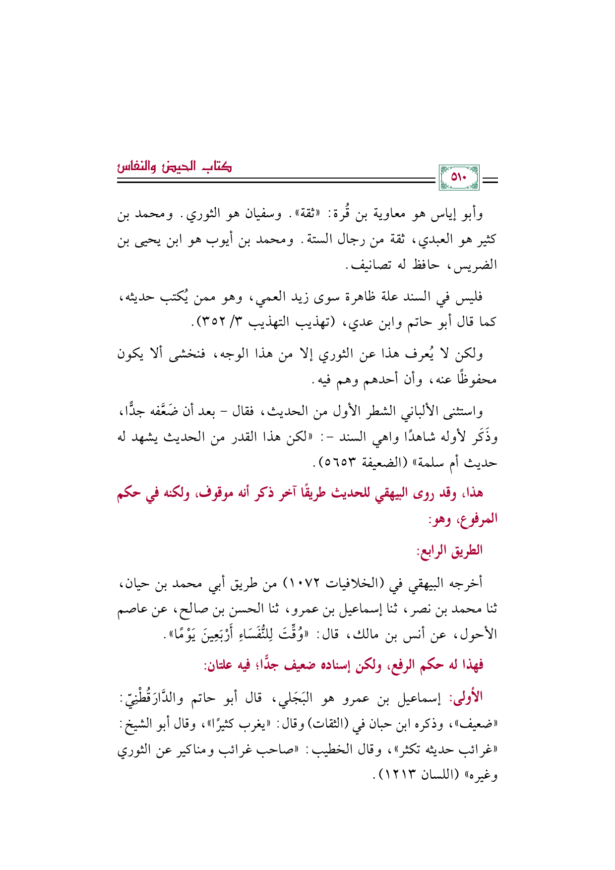 ولكن لا يُعرف هذا عن الثوري إلا من هذا الوجه، فنخشى ألا يكون محفوظًا عنه، وأن أحدهم وهم فيه.