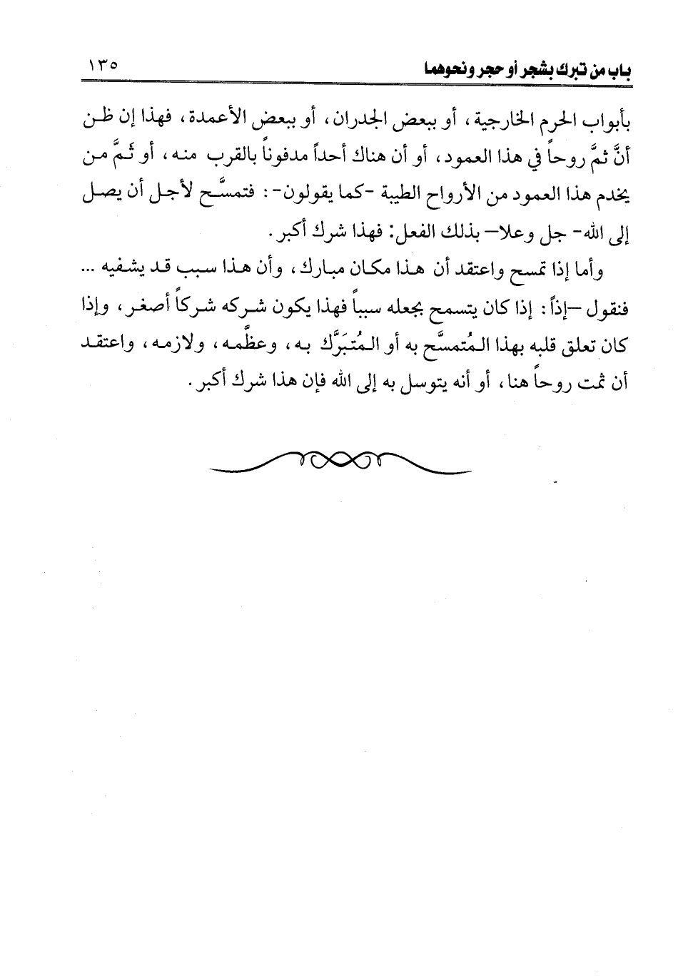 ـــــــــــــــــــــــــــــQبأبواب الحرم الخارجية، أو ببعض الجدران، أو ببعض الأعمدة، فهذا إن ظن أن ثَمَّ روحا في هذا العمود، أو أن هناك أحدا مدفونا بالقرب منه، أو ثَمَّ من يخدم هذا العمود من الأرواح الطيبة كما يقولون: فتمسح لأجل أن يصل إلى الله - جل وعلا - بذلك الفعل: فهذا شرك أكبر.