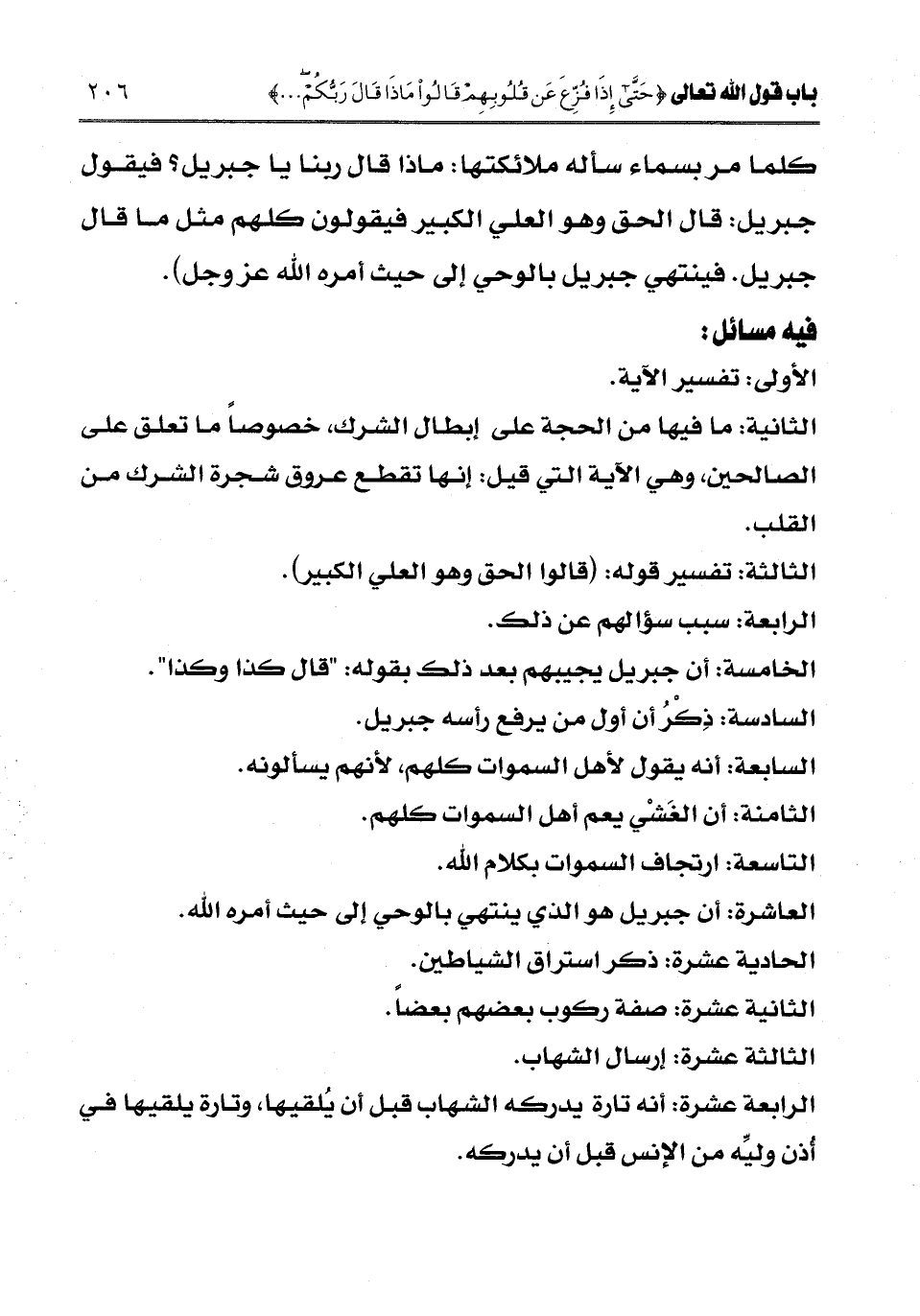 الثالثة: تفسير قوله {قَالُوا الْحَقَّ وَهُوَ الْعَلِيُّ الْكَبِيرُ} [سبأ: 23]