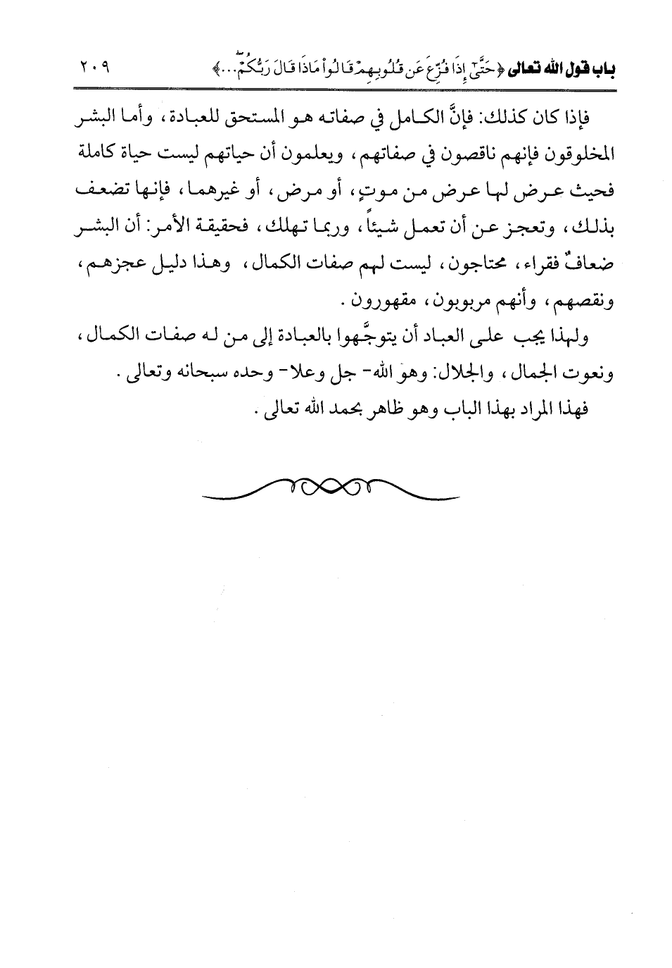 ولهذا يجب على العباد أن يتوجهوا بالعبادة إلى من له صفات الكمال، ونعوت الجمال، والجلال: وهو الله جل وعلا وحده سبحانه وتعالى. فهذا المراد بهذا الباب وهو ظاهر بحمد الله تعالى.