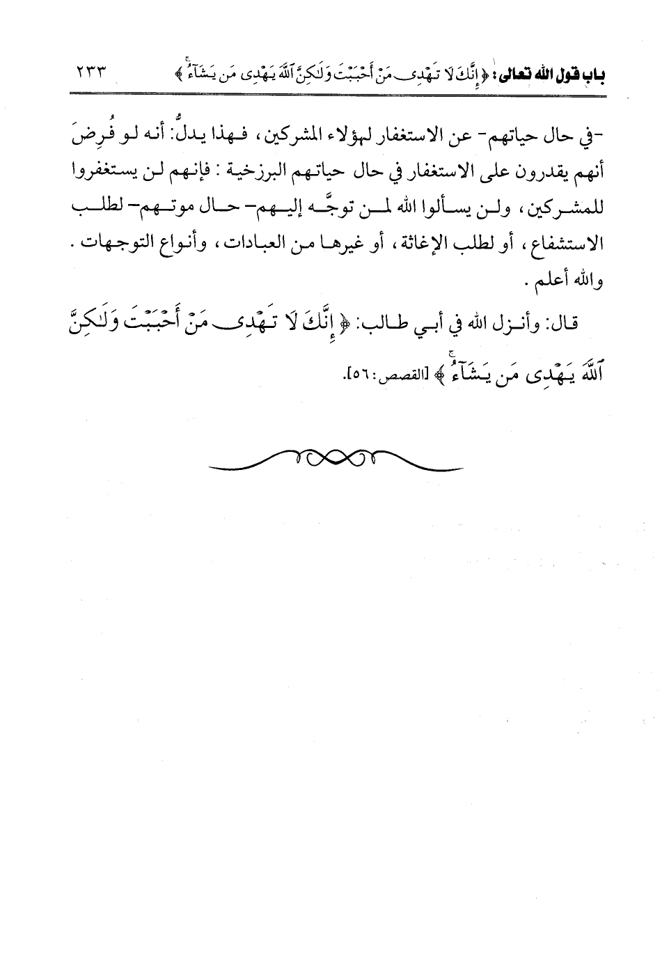 قال: وأنزل الله في أبي طالب: {إِنَّكَ لَا تَهْدِي مَنْ أَحْبَبْتَ وَلَكِنَّ اللَّهَ يَهْدِي مَنْ يَشَاءُ} [القصص: 56] [القصص: 56] .