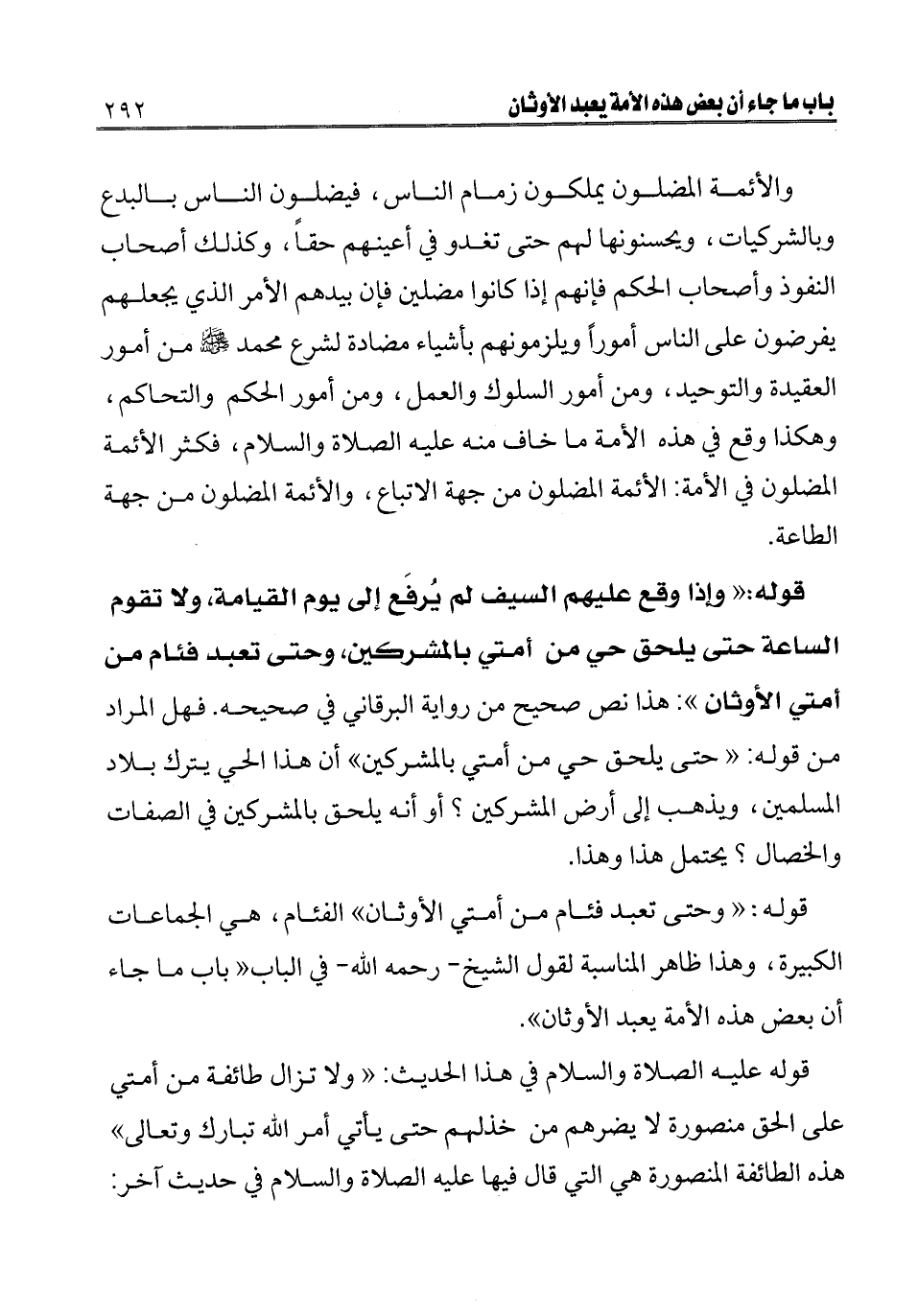 قوله: «وإذا وقع عليهم السيف لم يرفع إلى يوم القيامة ولا تقوم الساعة حتى يلحق حي من أمتي بالمشركين، وحتى تعبد فئام من أمتي الأوثان» : هذا نص صحيح من رواية البرقاني في صحيحه. فهل المراد من قوله: «حتى يلحق حي من أمتي بالمشركين» أن هذا الحي يترك بلاد المسلمين، ويذهب إلى أرض المشركين؟ أو أنه يلحق بالمشركين في الصفات والخصال؟ يحتمل هذا وهذا.