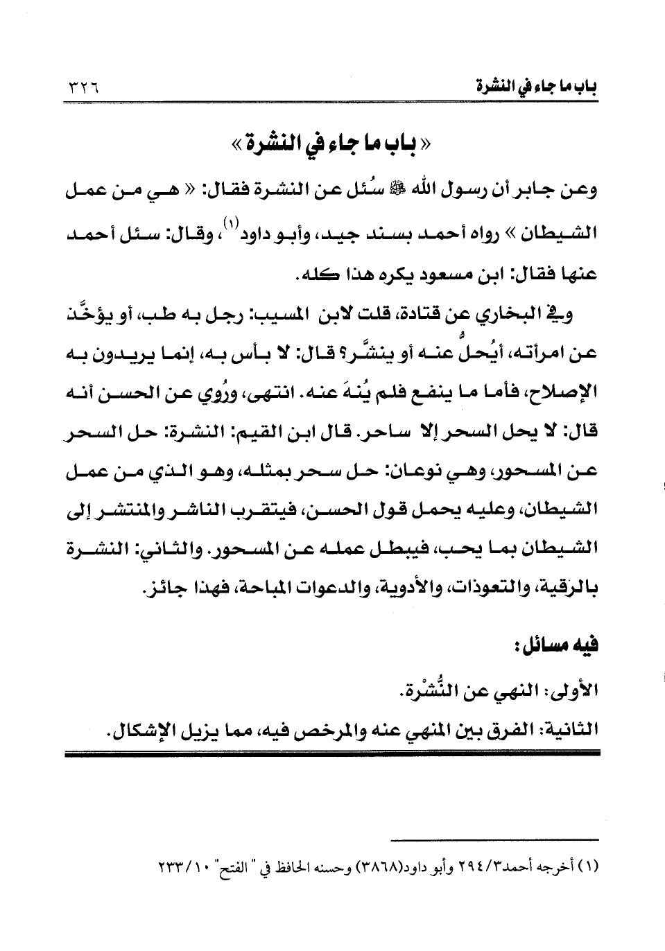 فيه مسائل: الأولى: النهي عن النشرة.