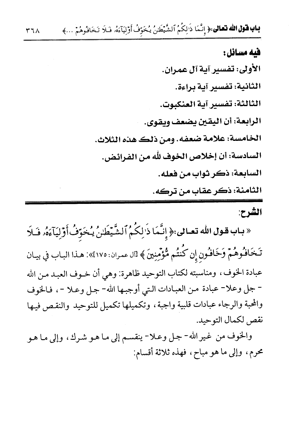 فيه مسائل: الأولى: تفسير آية آل عمران.