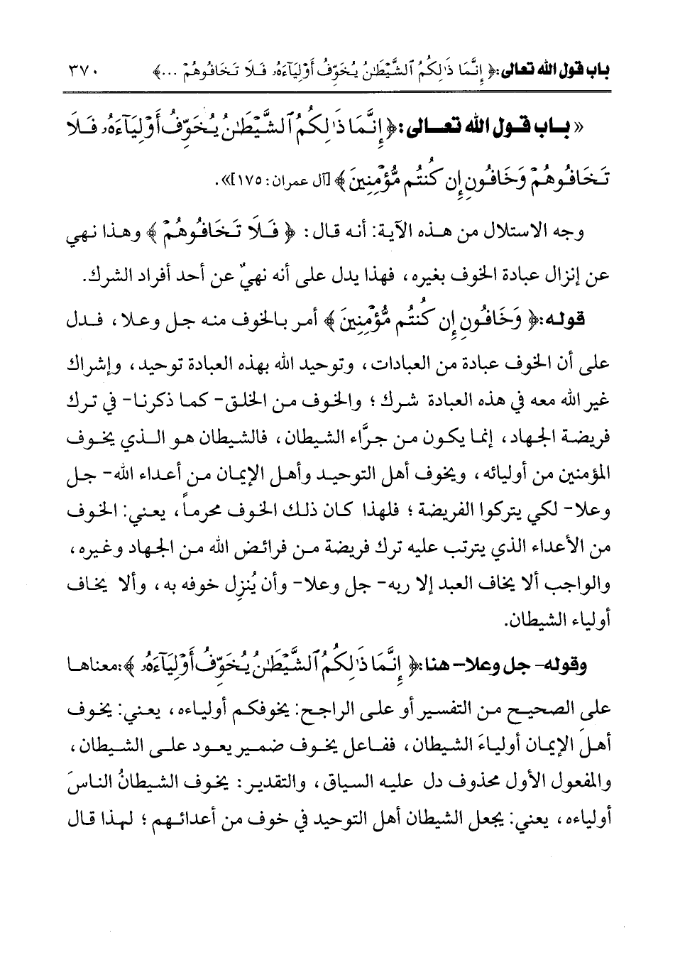 ـــــــــــــــــــــــــــــQ" باب قول الله تعالى: {إِنَّمَا ذَلِكُمُ الشَّيْطَانُ يُخَوِّفُ أَوْلِيَاءَهُ فَلَا تَخَافُوهُمْ وَخَافُونِ إِنْ كُنْتُمْ مُؤْمِنِينَ} [آل عمران: 175] [آل عمران: 175] .