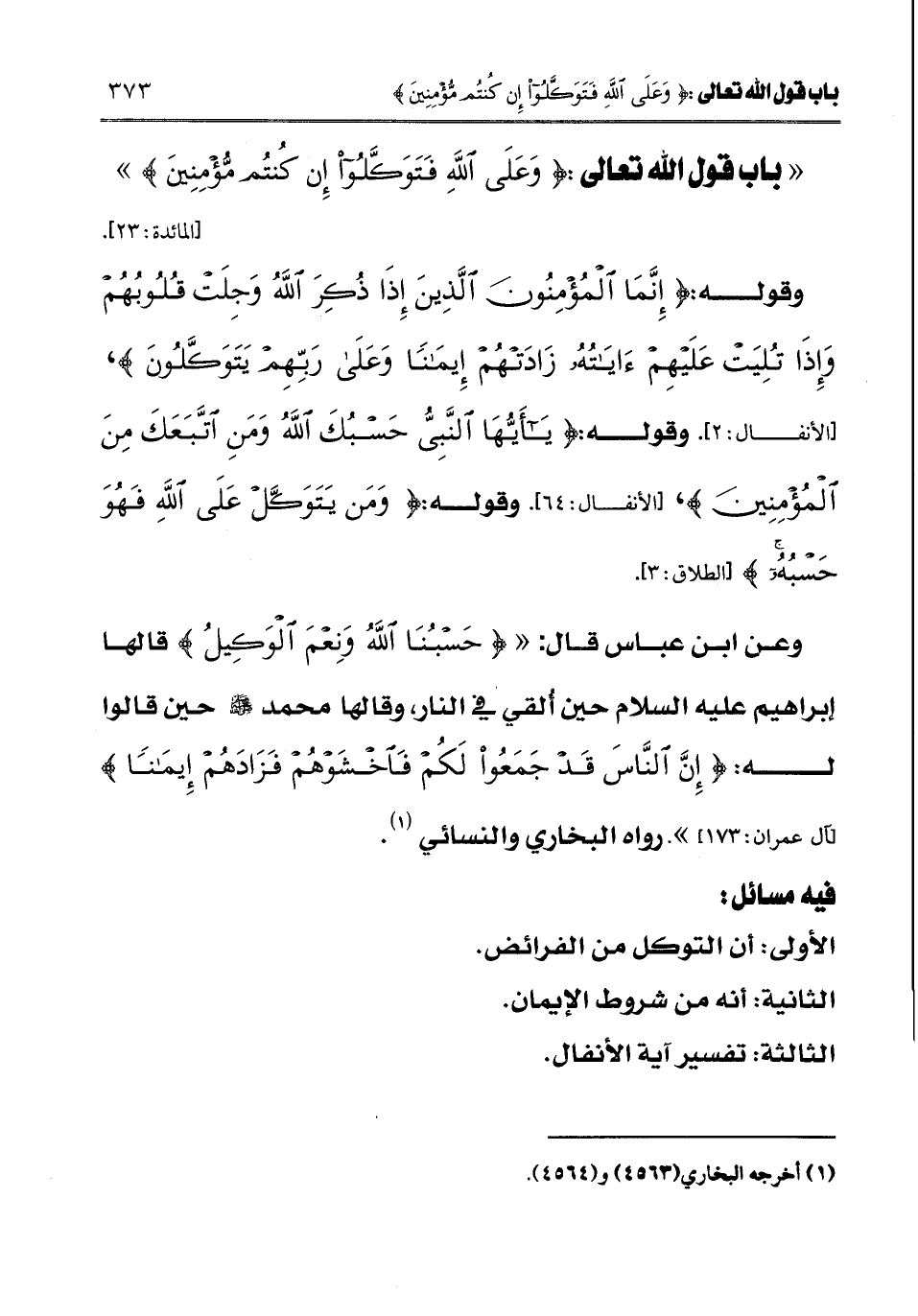 فيه مسائل: الأولى: أن التوكل من الفرائض.