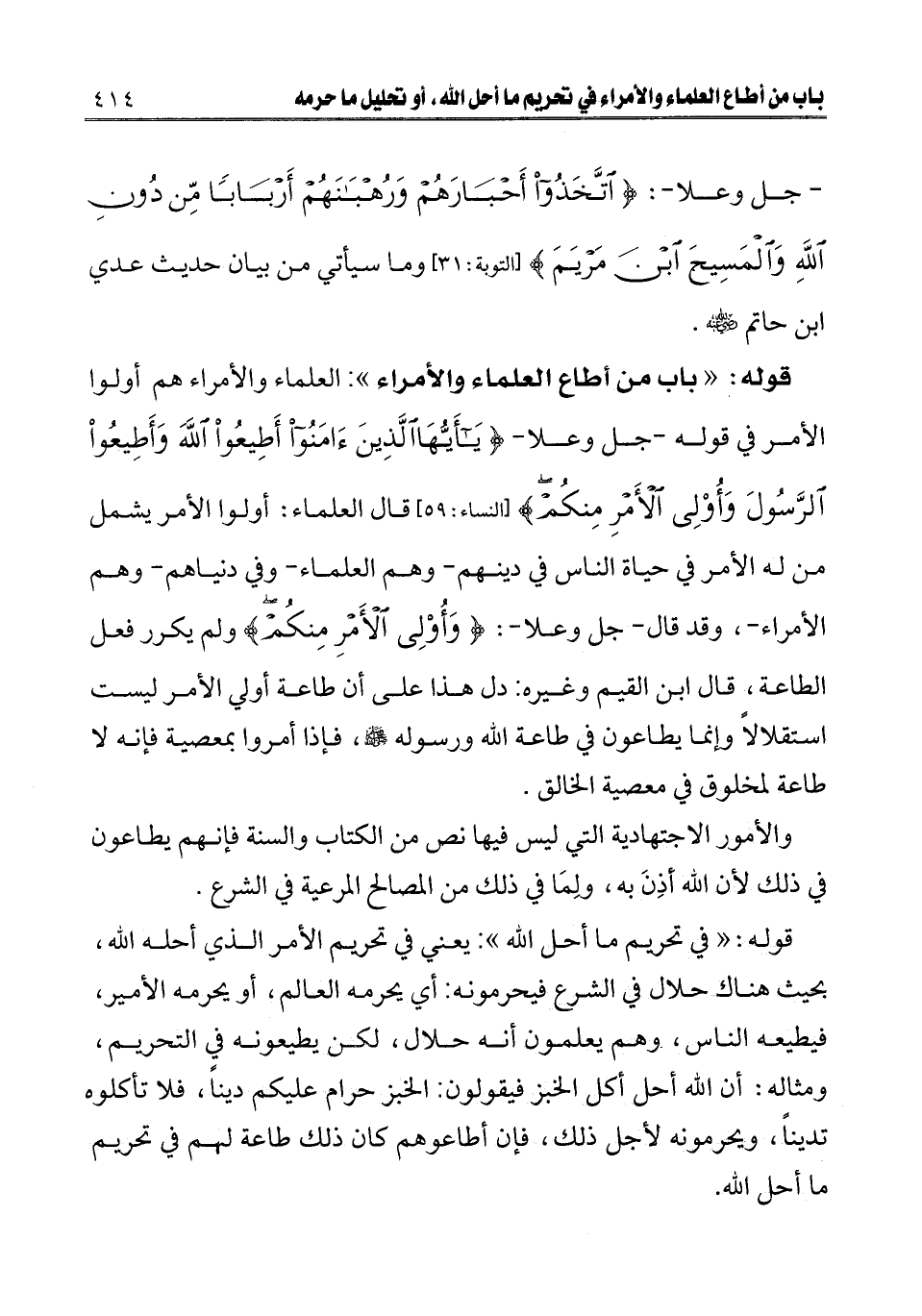 ـــــــــــــــــــــــــــــQ- جل وعلا -: {اتَّخَذُوا أَحْبَارَهُمْ وَرُهْبَانَهُمْ أَرْبَابًا مِنْ دُونِ اللَّهِ وَالْمَسِيحَ ابْنَ مَرْيَمَ} [التوبة: 31] [التوبة: 31] ، وما سيأتي من بيان حديث عدي بن حاتم رضي الله عنه.