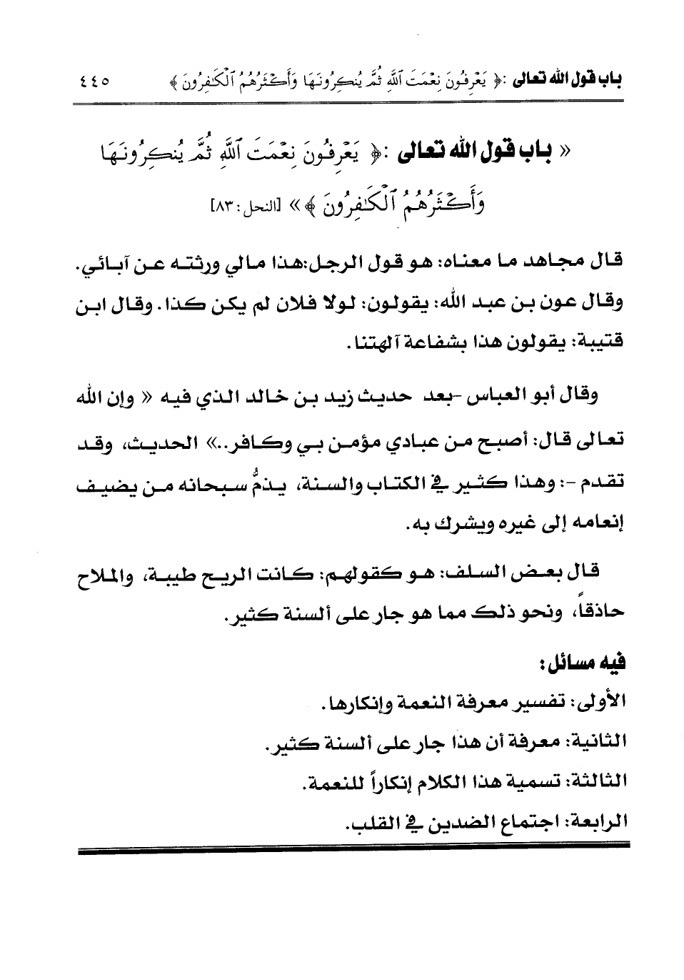 [باب قول الله تعالى يعرفون نعمة الله ثم ينكرونها وأكثرهم الكافرون]