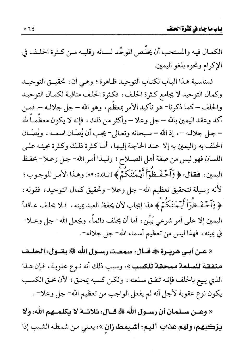 ـــــــــــــــــــــــــــــQالكمال فيه والمستحب أن يخلص الموحد لسانه وقلبه من كثرة الحلف في الإكرام ونحوه بلغو اليمين.