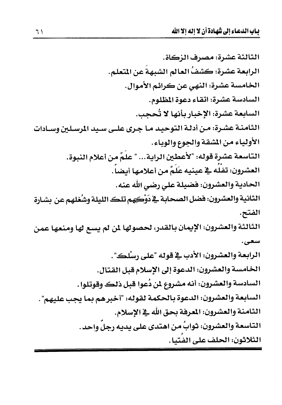 الثامنة عشرة: من أدلة التوحيد ما جرى على سيد المرسلين وسادات الأولياء من المشقة والجوع والوباء.