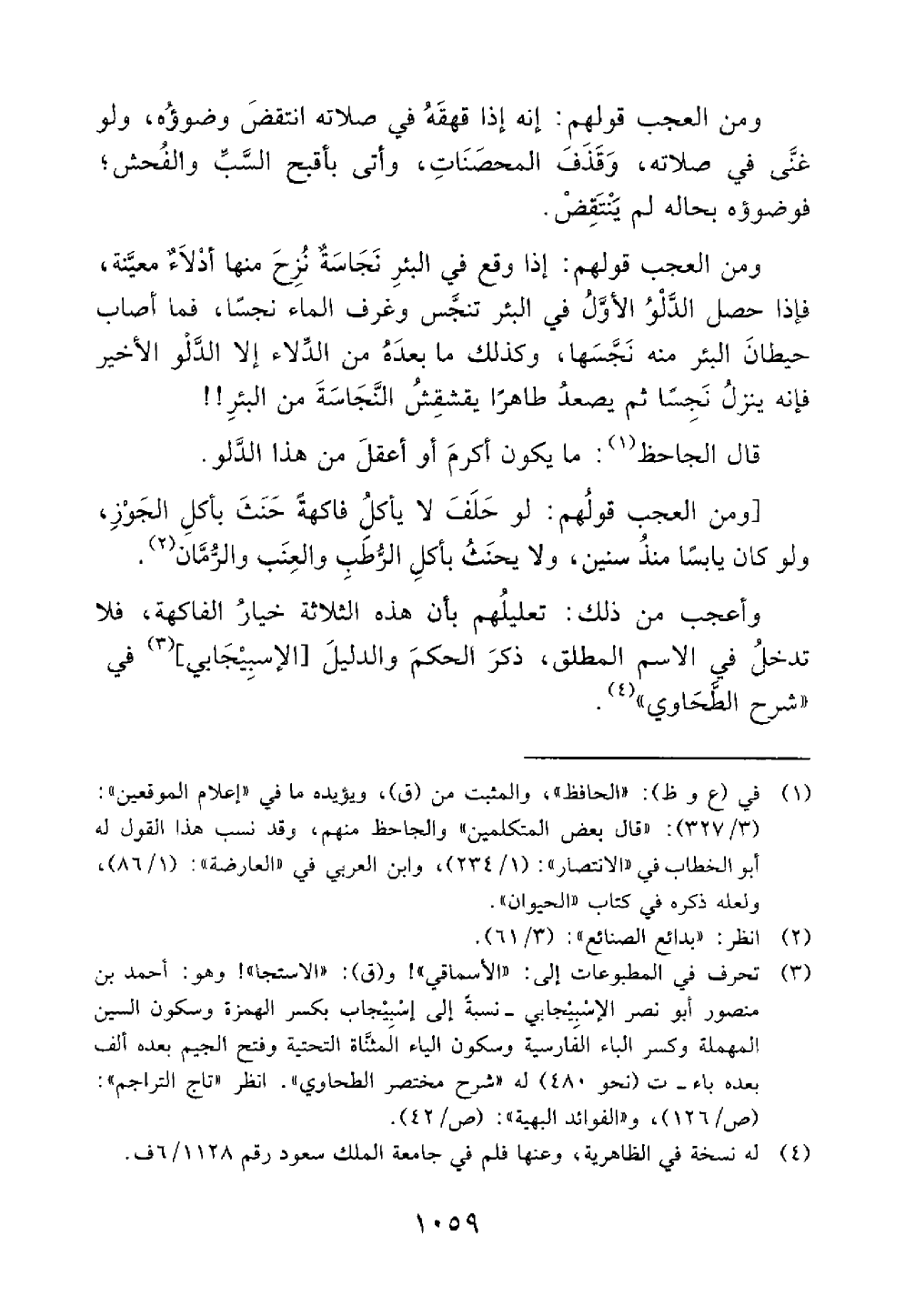ومن العجب قولهم أذا قهقه في الصلاة انتقض وضوؤه ولو غنى في صلاته وقذف المحصنات وأتى بأقبح السب والفحش فوضوؤه بحالة لم ينتقض