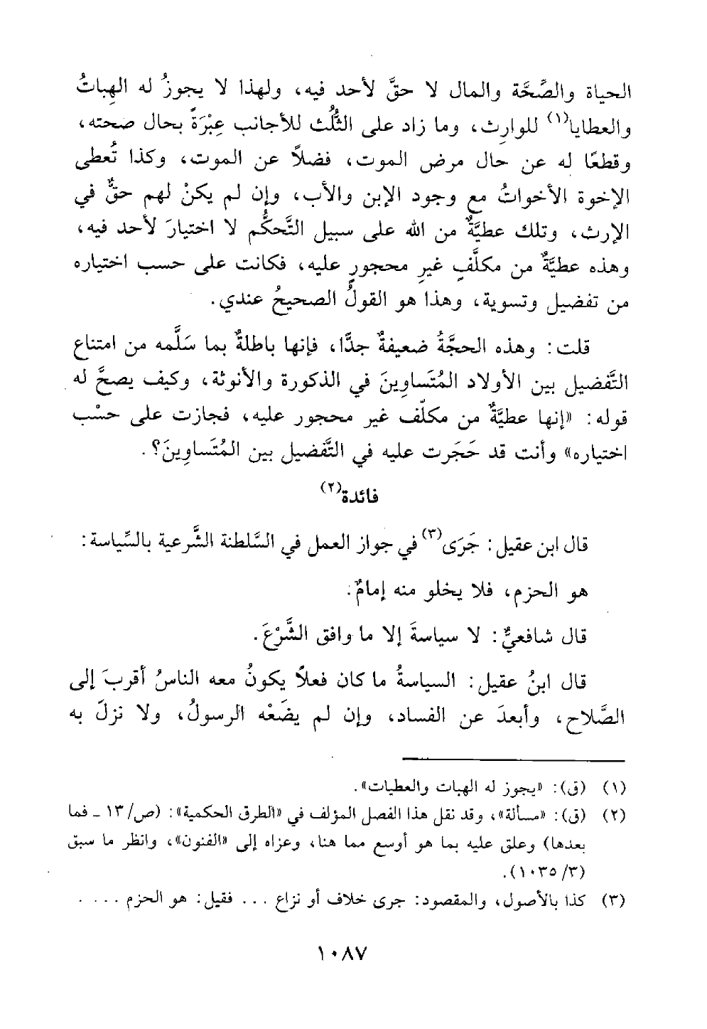 قال ابن عقيل الجري في جواز العمل في السلطنة الشرعية بالسياسة هو الحزم فلا يخلو منه إمام