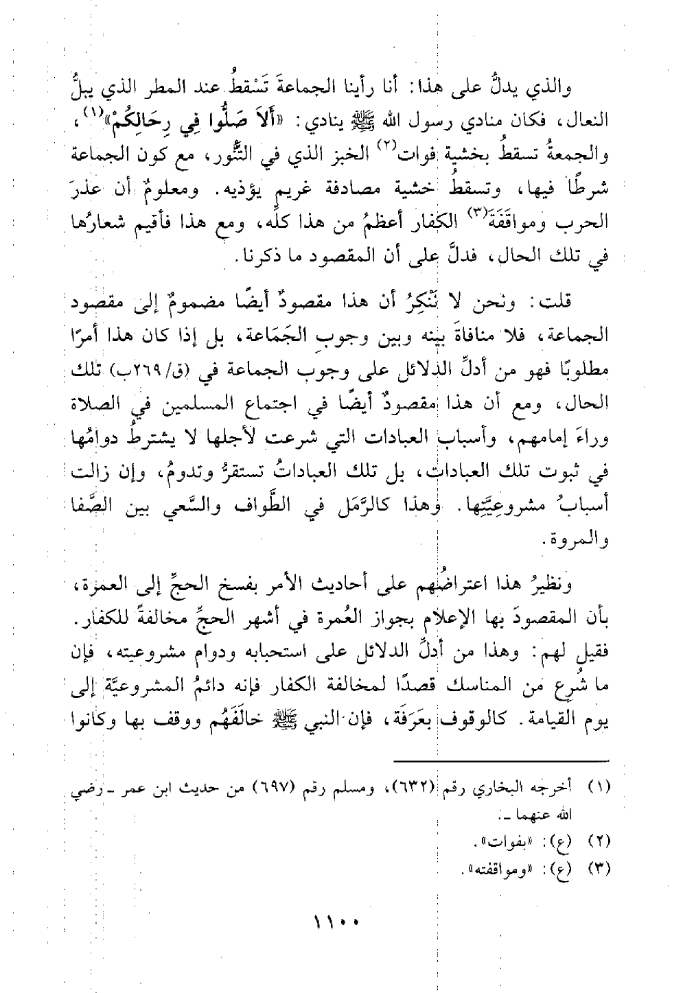 والذي يدل على هذا أنا رأينا الجماعة تسقط عند المطر الذي يبل النعال فكان منادي رسول الله ينادي ألا صلو في رحالكم والجمعة تسقط بخشية فوات الخبز الذي في التنور مع كون الجماعة شرطا فيها