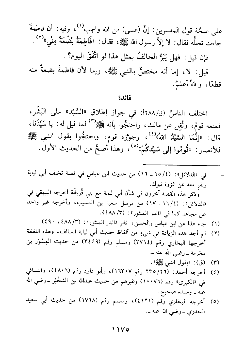 قيل لا إما لأنه مختص بالنبي لأن فاطمة بضعة منه قطعا والله أعلم فائدة إطلاق السيد على البشر