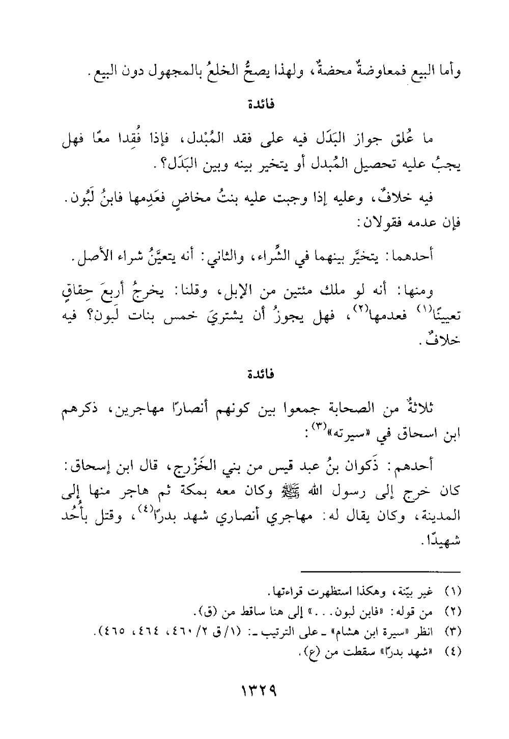 ومنها أنه لو ملك مائتين من الأبل وقلنا يخرج أربع حقاق فعدمها فهل يجوز أن يشترى خمس بنات لبون فيه خلاف فائدة ثلاثة من الصحابة كانوا أنصارا ومهاجرين