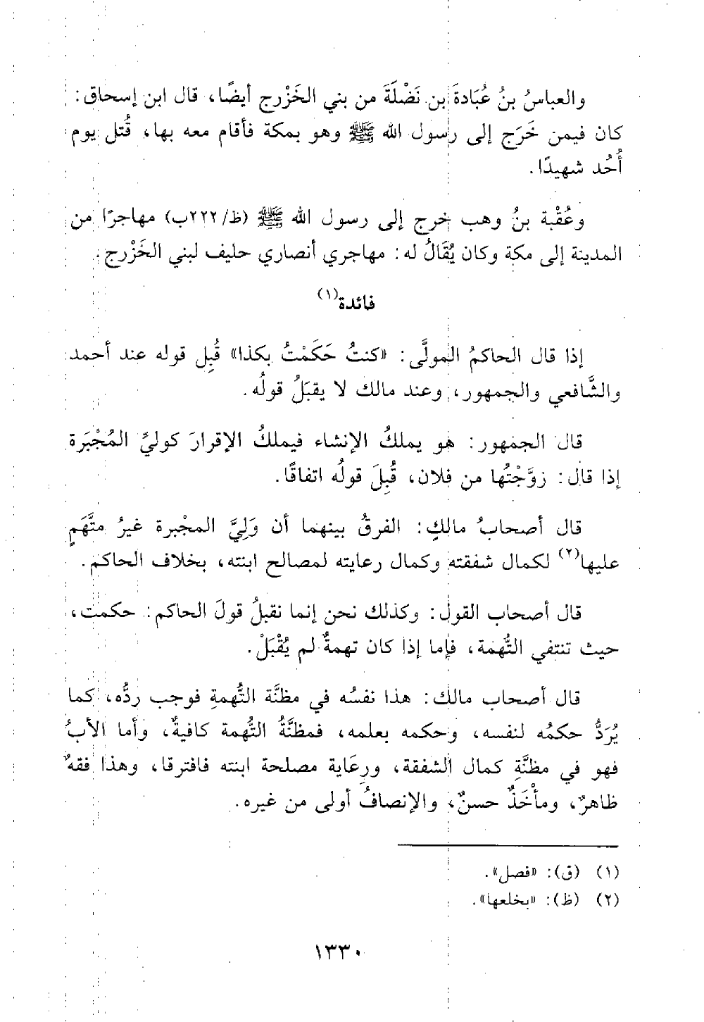 قال أصحاب مالك هذانفسه في مظنه التهمة فوجب رده كما يرد حكمه لنفسه وحكمه بعلمه فمظنه التهمة كافيه وأما الأب فهو في مظنة كمال الشفقة ورعاية مصلحة ابنته فافترقا وهذا فقه ظاهر ومأخذ حسن والإنصاف أولى من غيره @