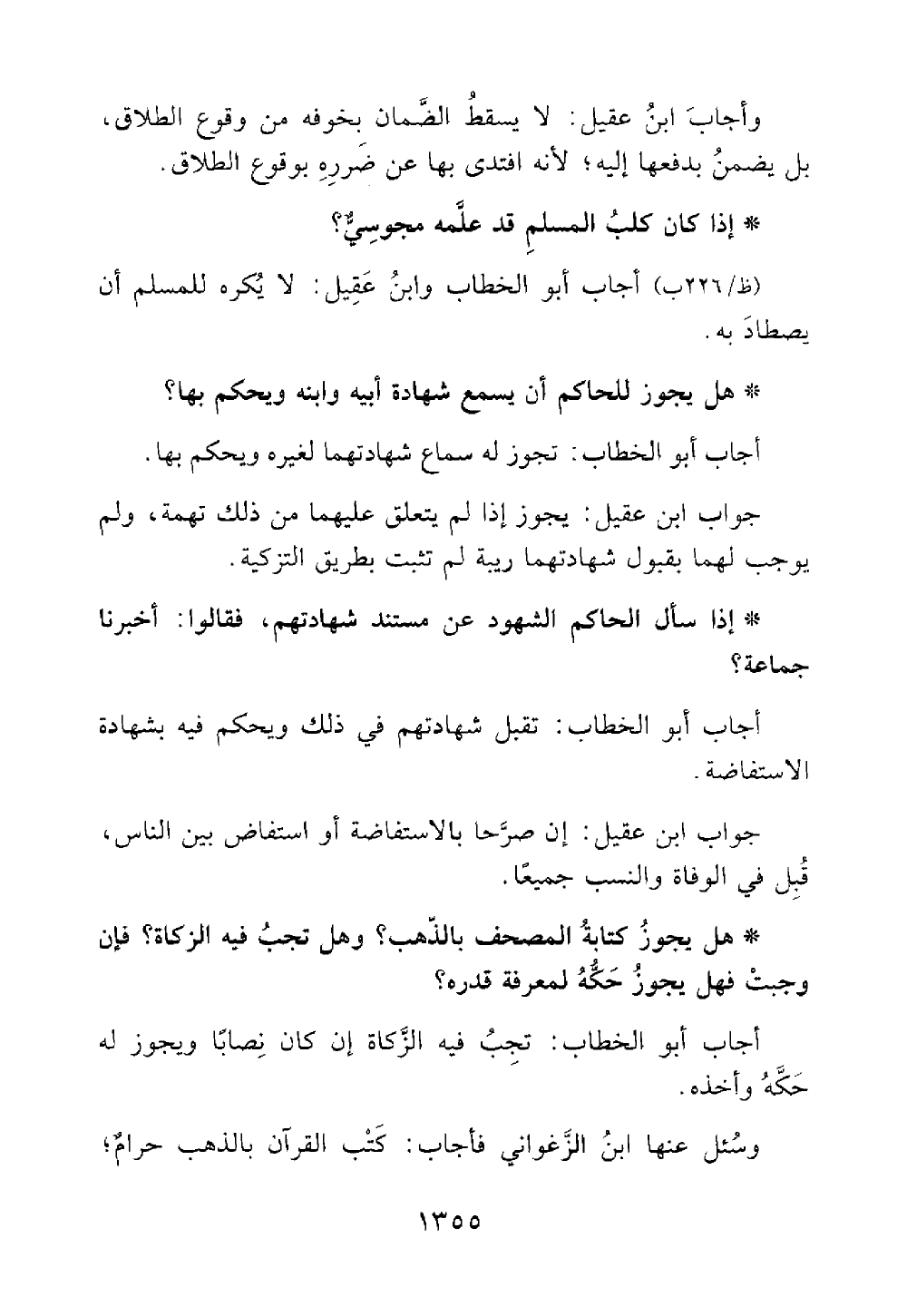 هل يجوز كتابه المصحف بالذهب وهل تجب فيه الزكاة فإن وجبت فهل يجوز حكه لمعرفة قدرة اجاب أبو الخطاب تجب فيه الزكاة إن كان نصابا ويجوز له حكه وأخذه وسأل عنها ابن عقيل بن الزغوني فأجاب إن كتابه القرآن بالذهب حرام @