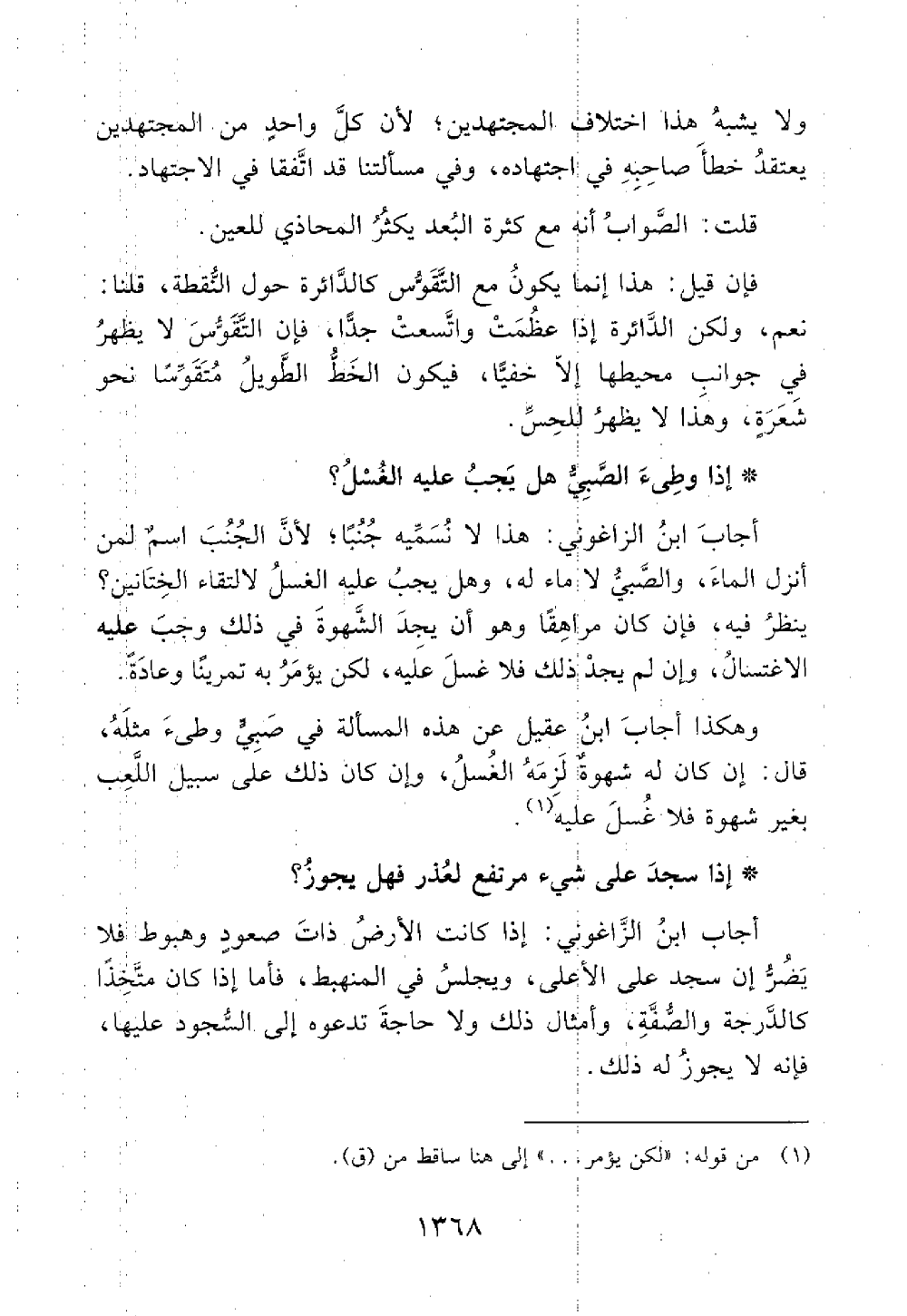 إذا سجد على شيء مرتفع لعذر فهل يجوز أجاب ابن الزاغوني إذا كانت الأرض ذات صعود وهبوط فلا يضر إن سجد على الأعلى ويجلس في المنهبط فأما إذا كان متخذا كالدرجة والضفة وأمثال ذلك ولا حاجة تدعوه إلى السجود عليها فإنه لا يجوز له ذلك@