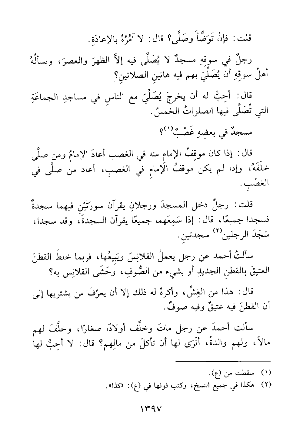 سألت أحمد عن رجل يعمل القلانس ويبيعها فربما خلط القطن العتيق بالقطن الجديد أو بشيء من الصوف وحشى القلانس به قال هذا من الغش وأكره له ذلك إلا أن يعرف من يشتريها أن القطن فيه عتيق وفيه صوف