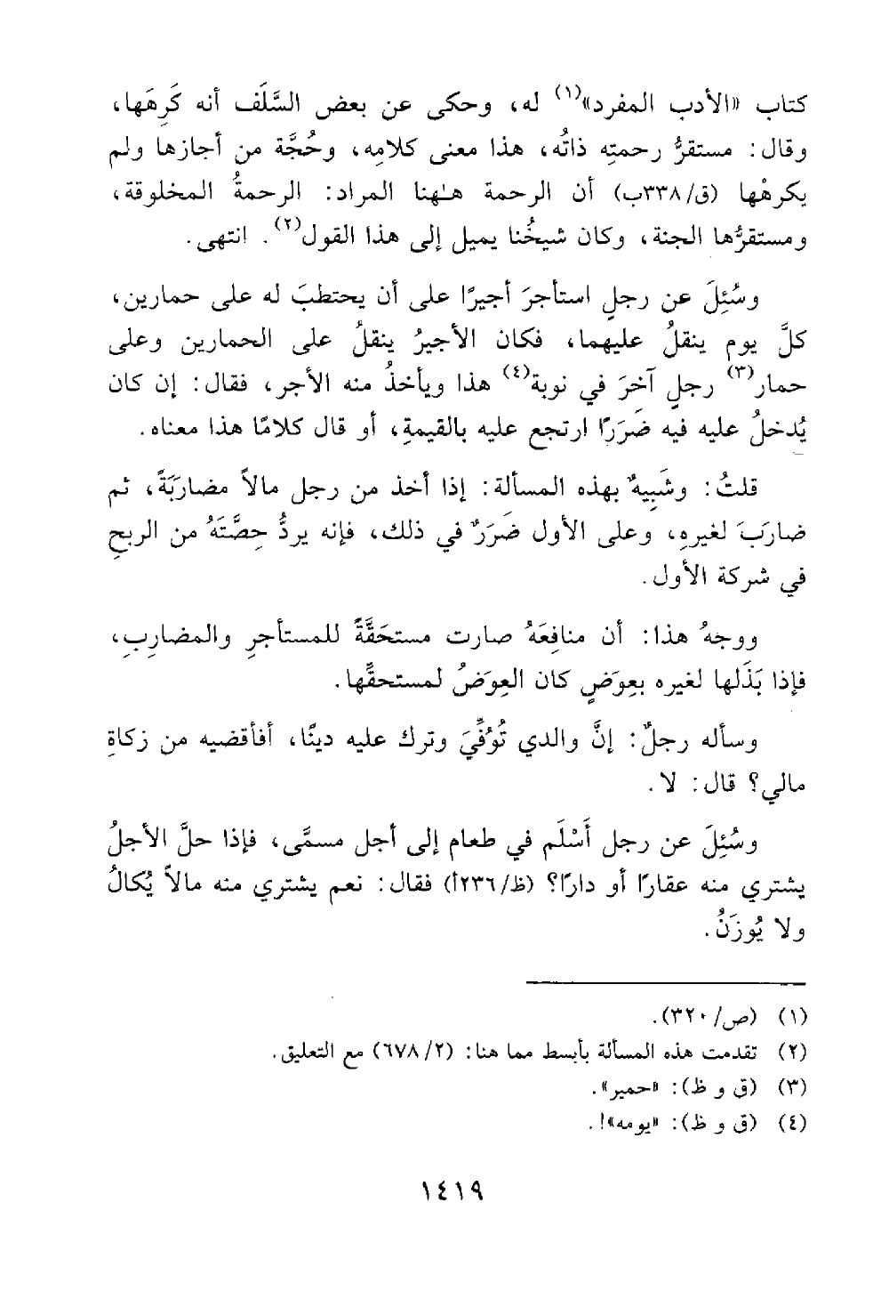 كتاب الأدب المفرد له وحكى عن بعض السلف أنه كرهها وقال مستقر رحمته ذاته هذا معنى