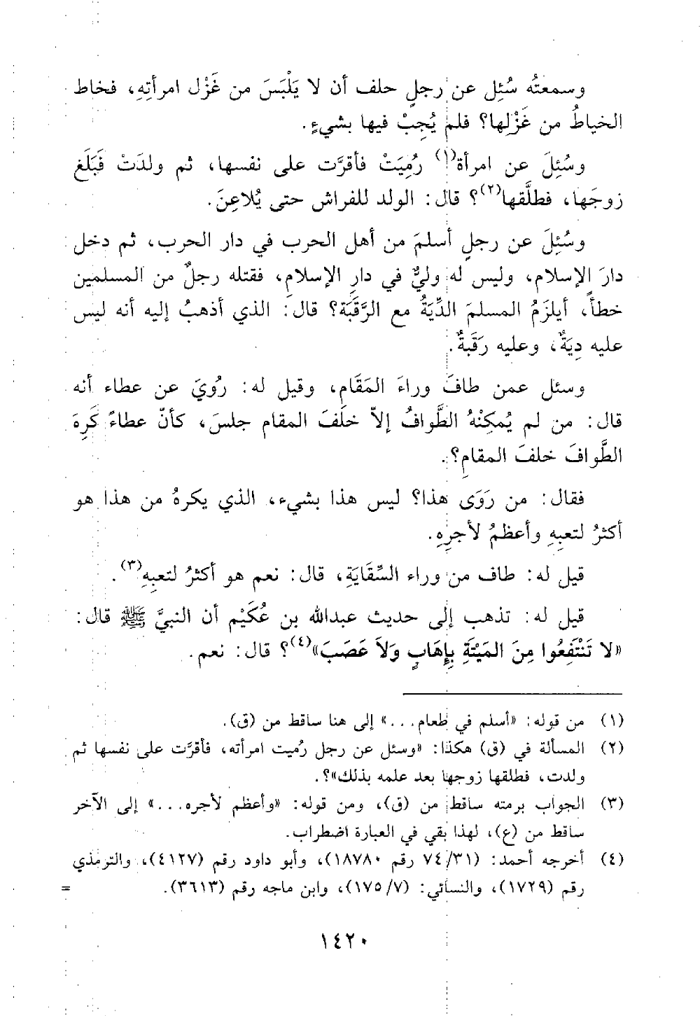 قيل له تذهب إلى حديث عبد الله بن حكيم ! أن النبي قال لا تنتفعوا من الميتة بإهاب ولا عصب // رواه أبو داود وابن ماجه وأحمد والطيالسى والنسائي والبخاري والبيهقي والترمذي // قال نعم@