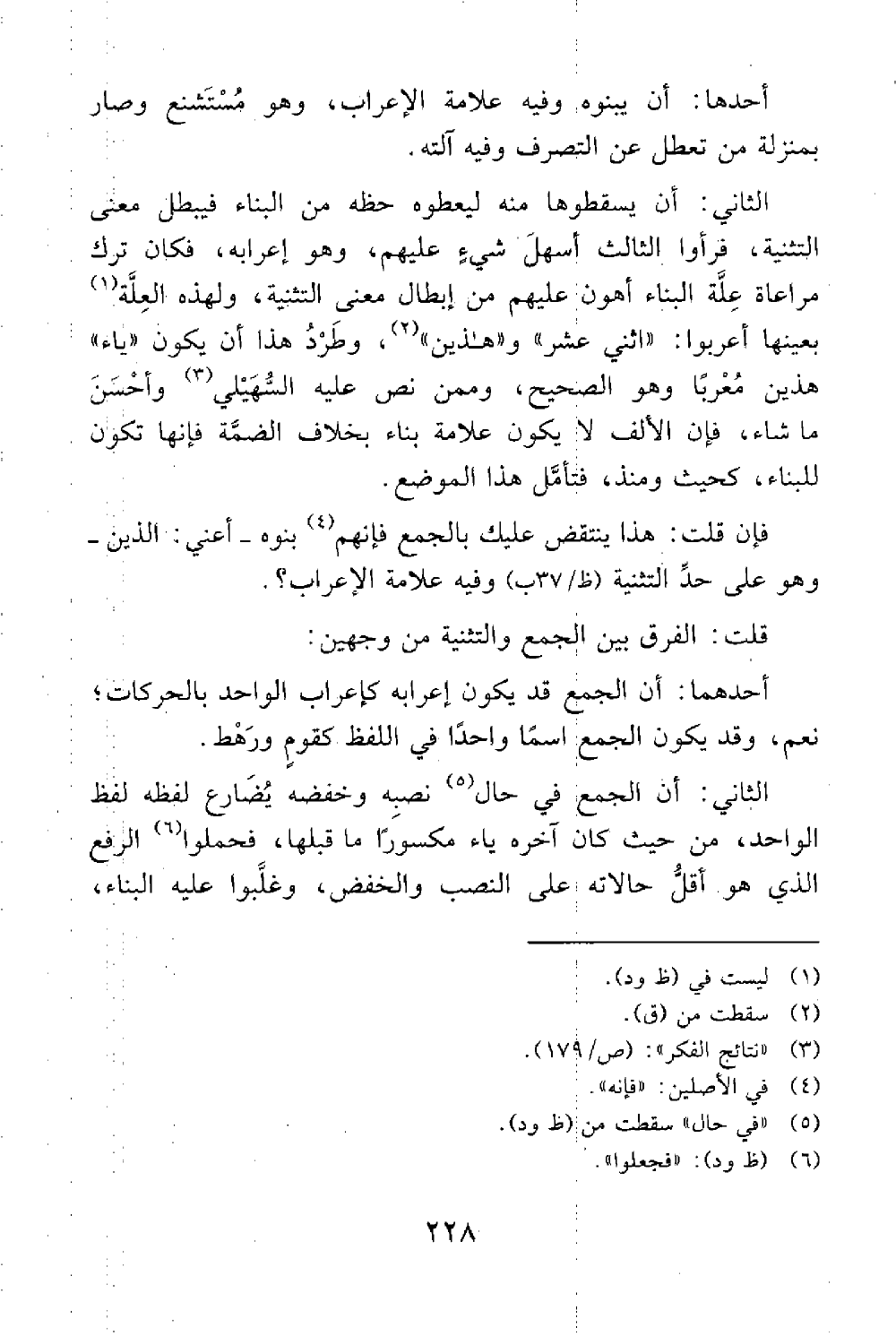 الثاني أن يسقطوها منه ليعطوه حظه من البناء فيبطل معنى التثنية