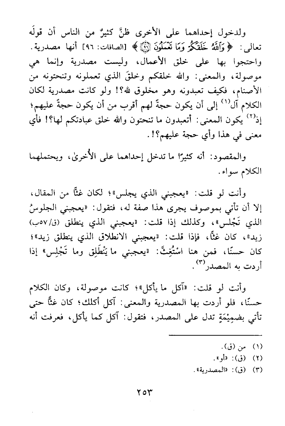 ولدخول إحداهما على الأخرى ظن كثير من الناس أن قوله تعالى والله خلقكم وما تعملون الصافات 96 أنها مصدرية واحتجوا بها على خلق الأعمال