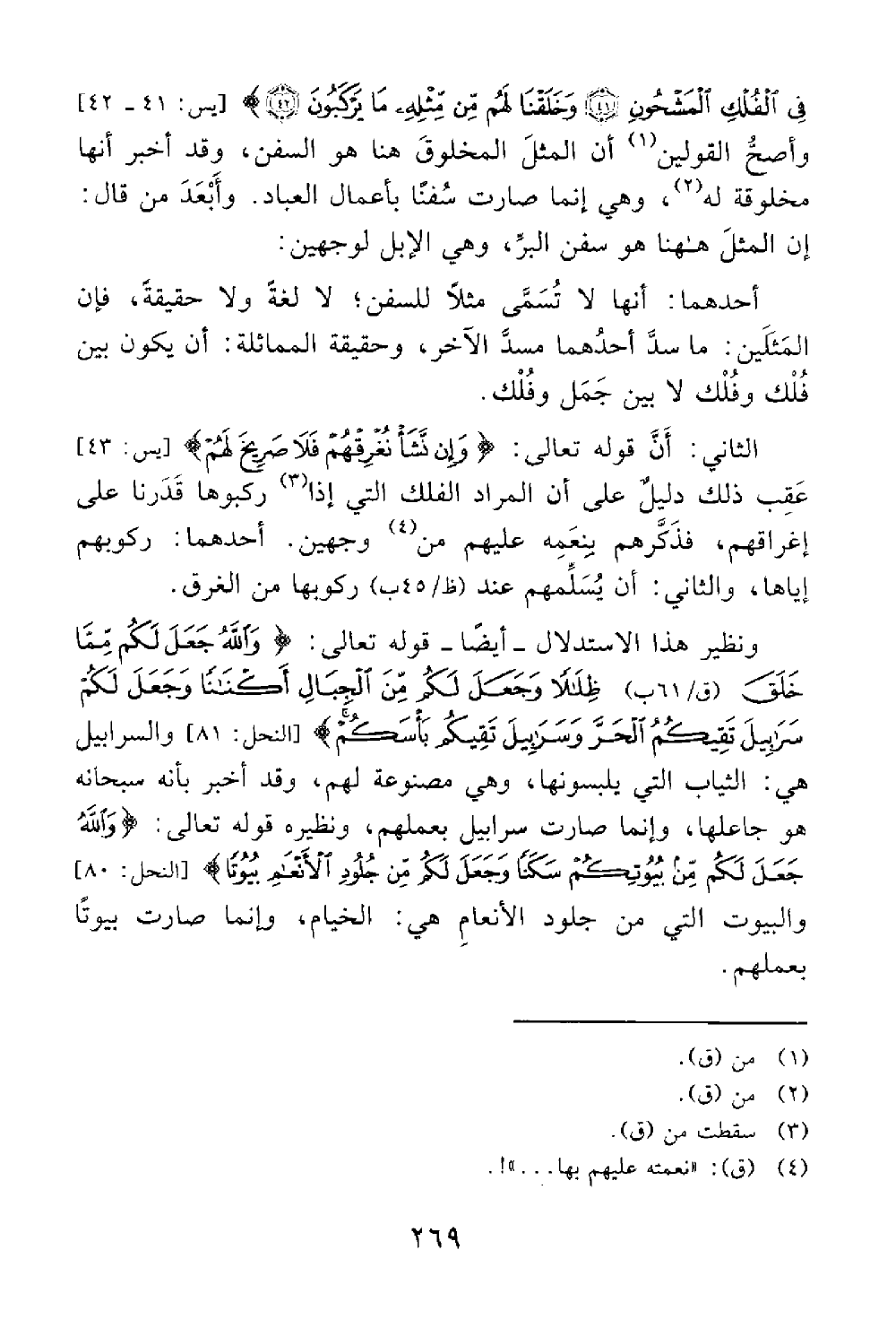الثاني أن قوله إن نشأ نغرقهم فلا صريخ لهم يس 43 عقب ذلك دليل على أن المراد الفلك التي إذا ركبوها قدرنا على إغراقهم فذكرهم بنعمه عليهم من وجهين