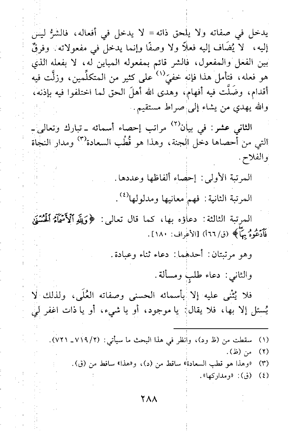 المرتبة الثالثة دعاؤه بها كما قال تعالى ولله الأسماء الحسنى فادعوه بها الأعراف 180 وهو مرتبتان