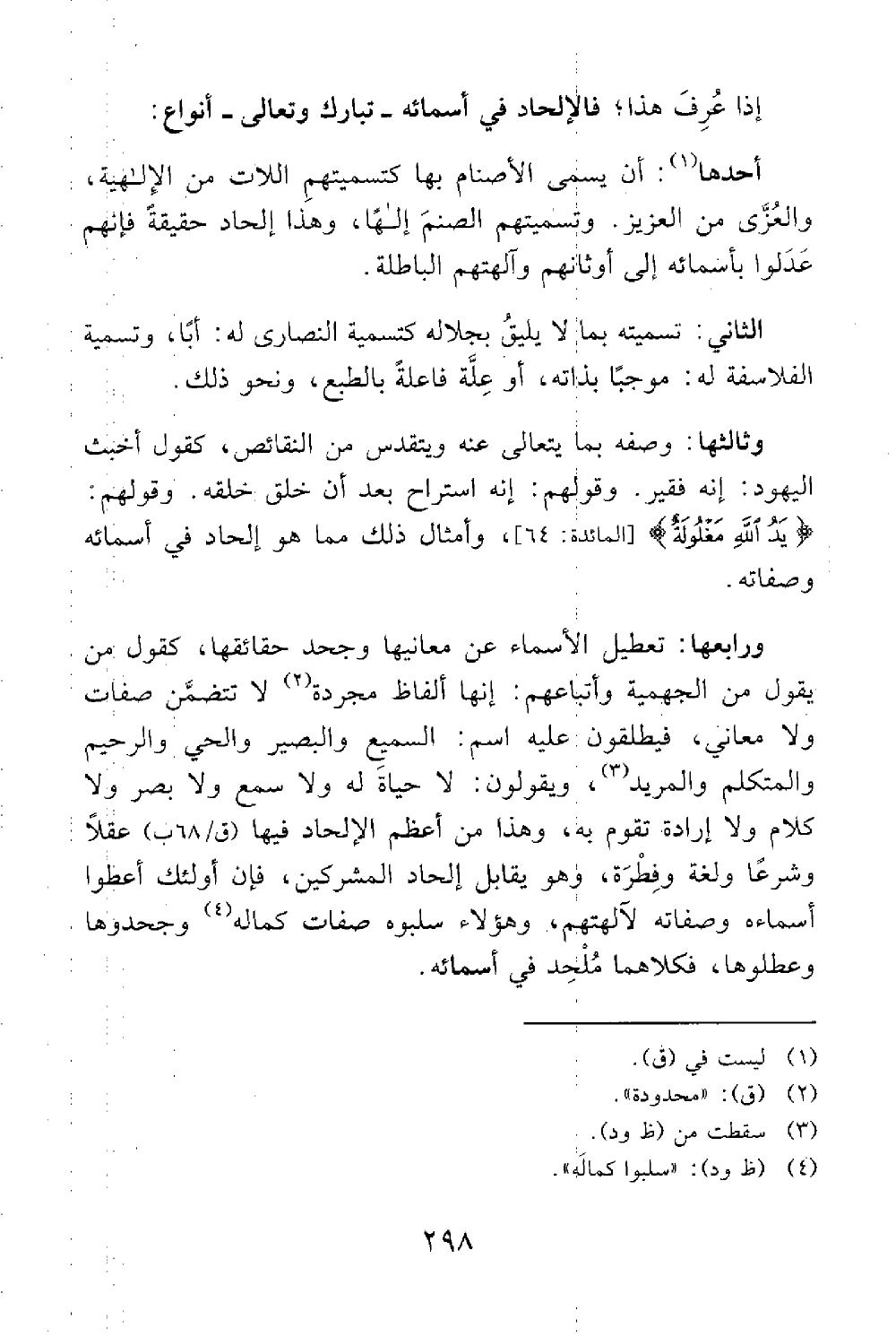 وقولهم يد الله مغلولة المائدة 64 وأمثال ذلم مما هو إلحاد في أسمائه وصفاته