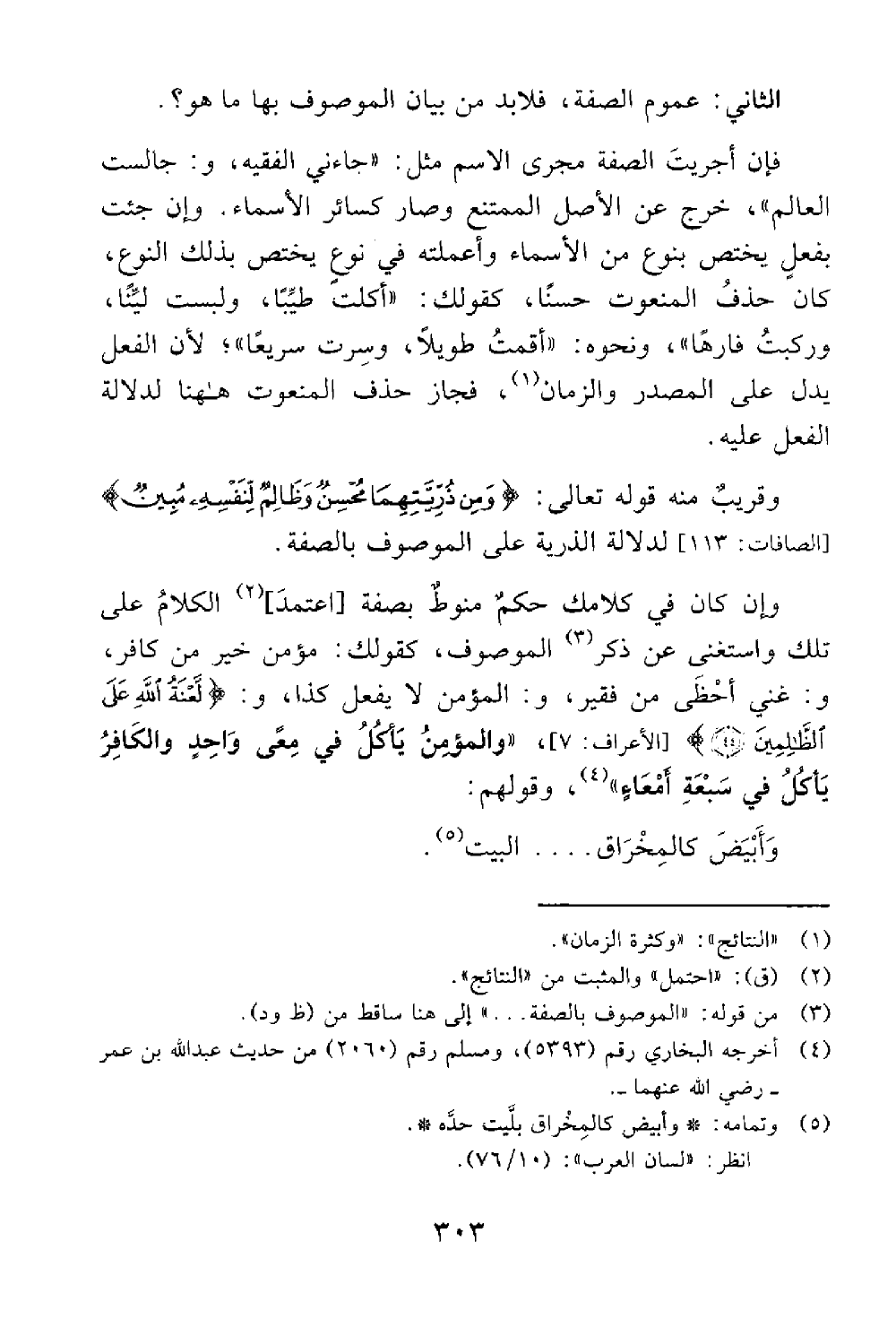 الثاني عموم الصفة فلا بد من بيان الموصوف بها ما هو
