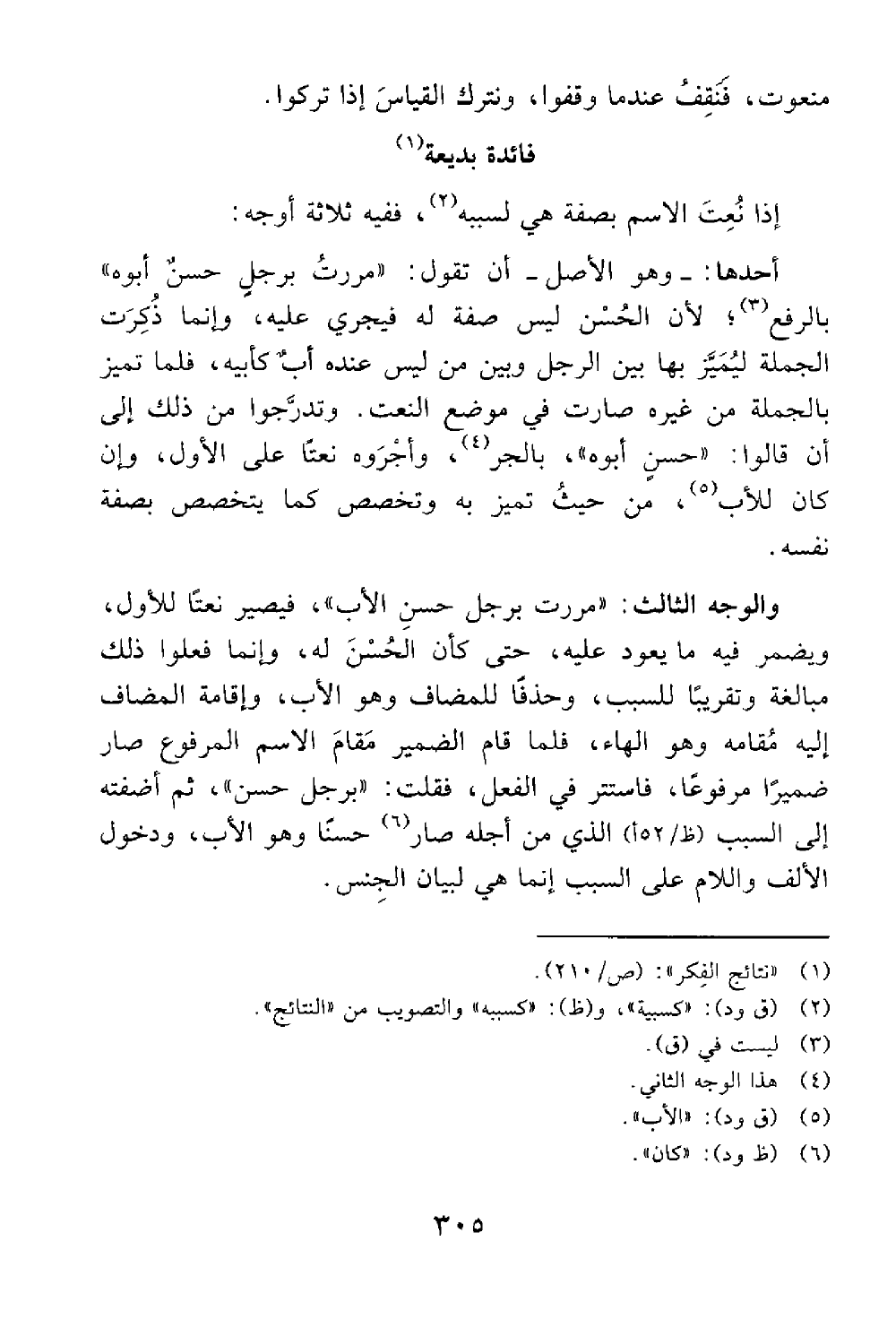 إذا نعت الإسم بصفة هي كسببه ففيه ثلاثة أوجه