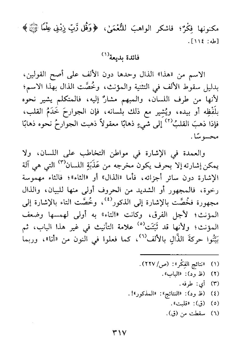 القلب فإذا ذهب القلب إلى شيء ذهابا معقولا ذهبت الجوارح نحوه ذهابا محسوسا والعمدة في الإشارة في مواطن التخاطب على اللسان ولا يمكن إشارته إلا بحرف يكون مخرجه من عذبة اللسان التي هي آلة الإشارة دون سائر أجزائه