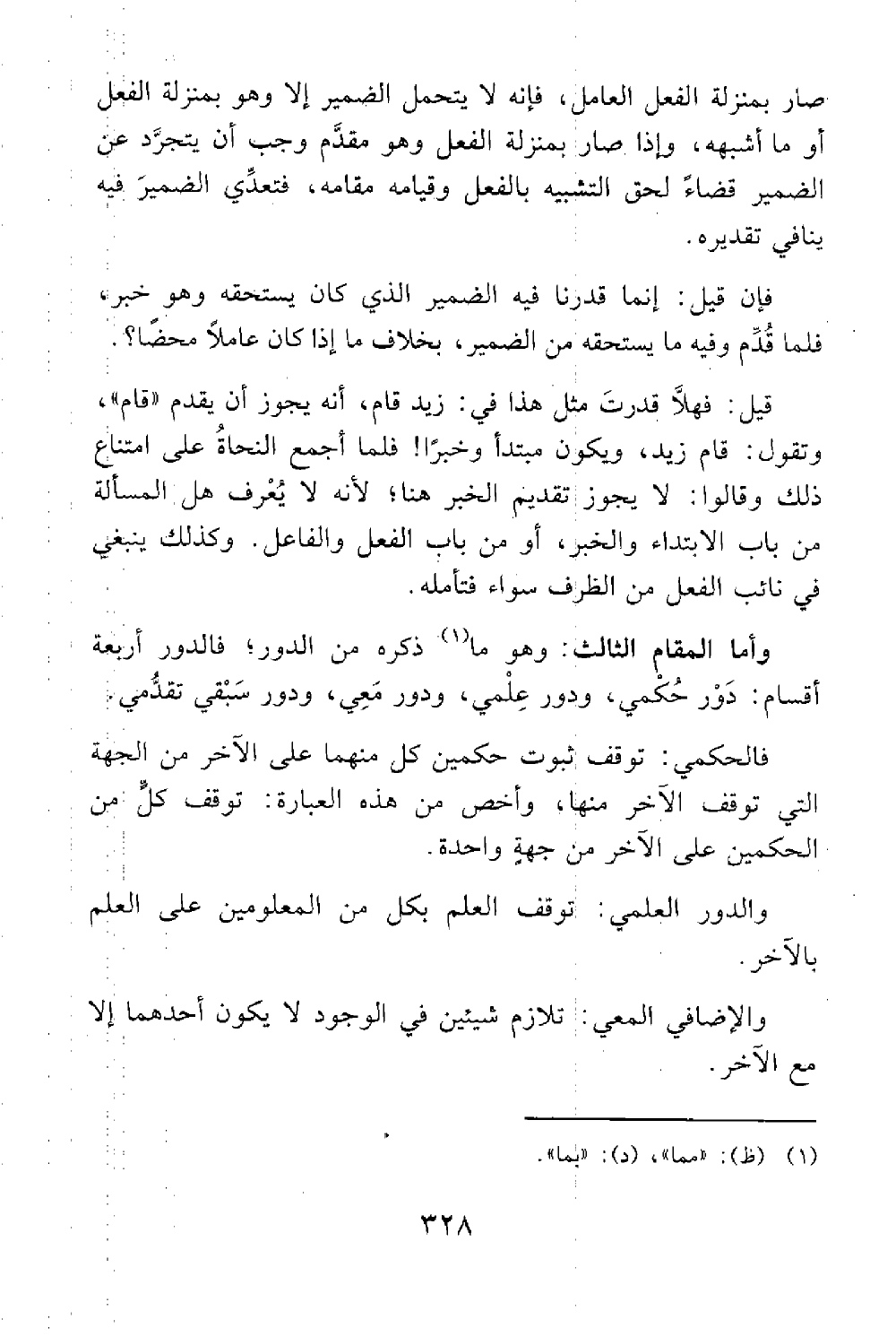 وأما المقام الثالث وهو ما ذكره من الدور فالدور أربعة أقسام دور حكمي ودور علمي ودور معي ودور سبقي تقدمي