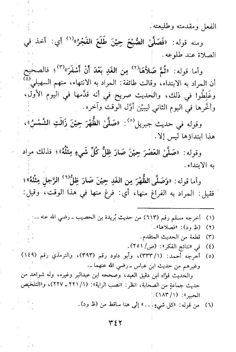 ومنه قوله فصلى الصبح حتى طلع الفجر // رواه مسلم والترمذي والنسائي // أي أخذ في الصلاة عند طلوعه