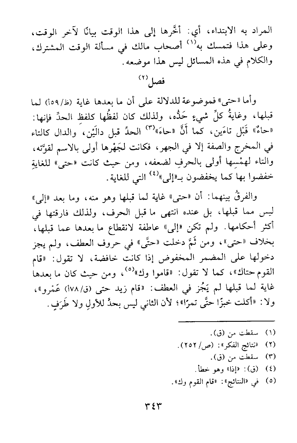 وأما حتى فموضوعة للدلالة على أن ما بعدها غاية لما قبلها وغاية كل شيء حده لذلك كان لفظها كلفظ الحد فإنها حاء قبل تائين كما أن الحد جاء قبل دالين والدال كالتاء في المخرج والصفة إلا في الجهر فكانت لجهرها أولى بالإسم لقوته والتاء لهمسها أولى بالحرف لضعفه