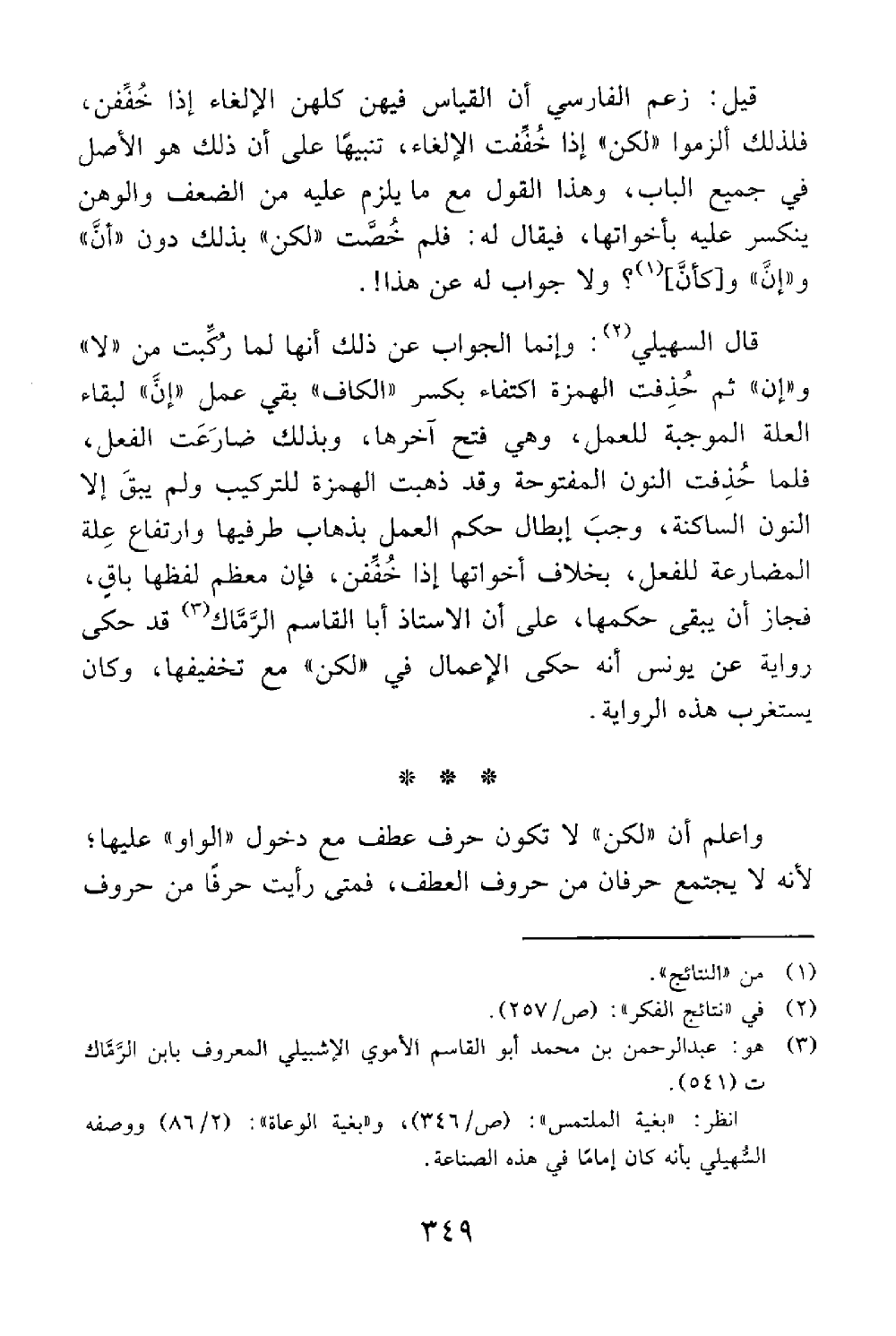 على أن الأستاذ أبا القاسم الرماني قد حكى رواية عن يونس أنه حكى الإعمال في لكن مع تخفيفها وكان يستغرب هذه الرواية