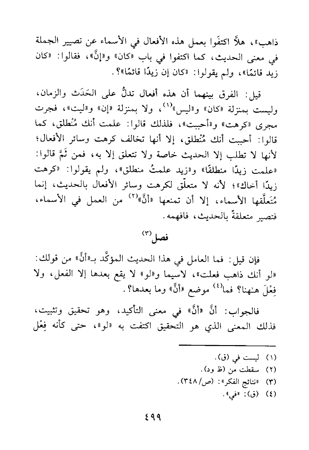 ذاهب هلا اكتفوا بعمل هذه الأفعال في الأسماء عن تصيير الجملة في معنى الحديث كما اكتفوا في باب كان وأن فقالوا كان زيد قائما ولم يقولوا كان أن زيدا قائما