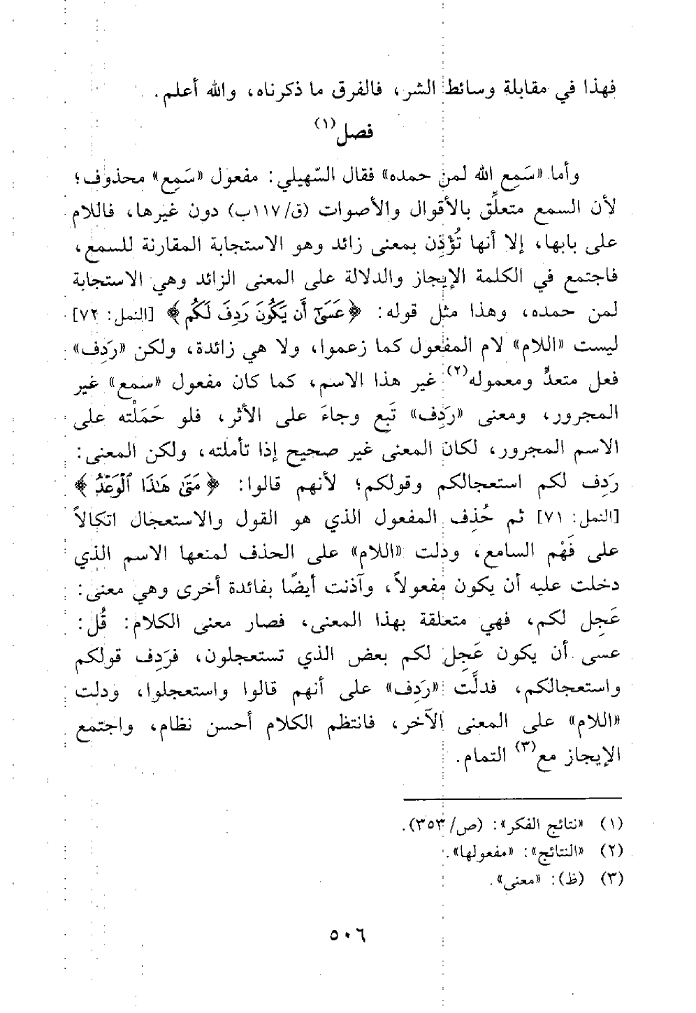 فهذا في مقابلة وسائط الشرط فالفرق ما ذكرناه والله أعلم فصل سمع الله لمن حمده