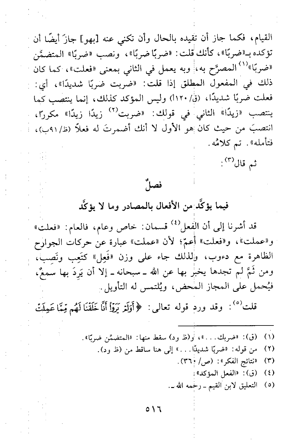 فيما يؤكد من الأفعال بالمصادر وما لا يؤكد