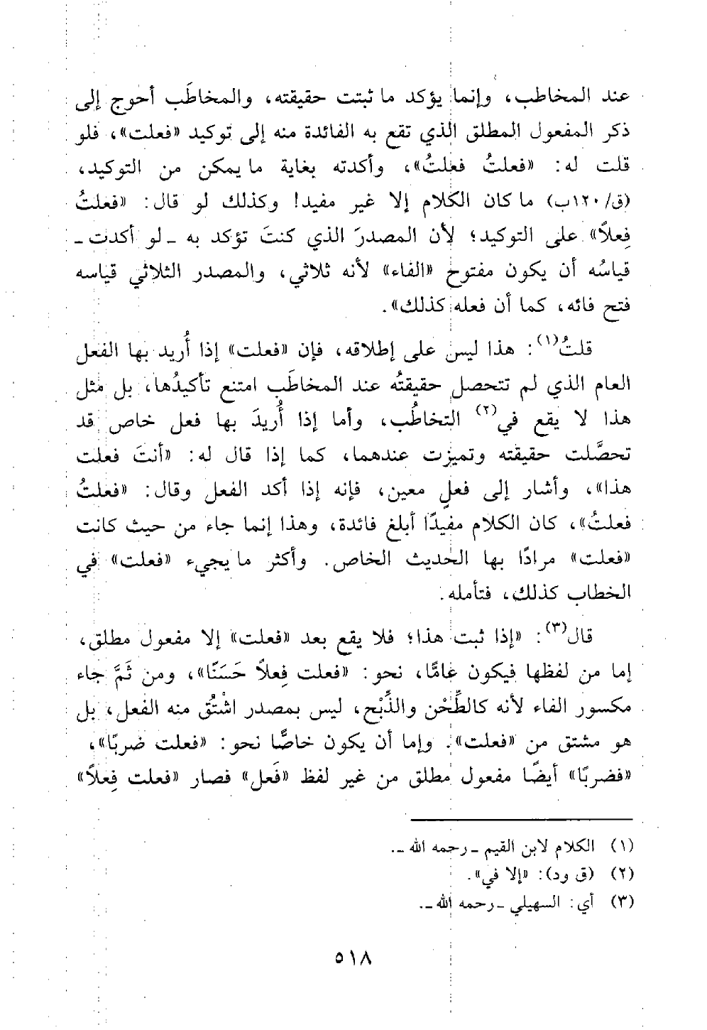 وأما إذا أريد بها فعل خاص قد تحصلت حقيقته وتميزت عندهما كما إذا قال له أنت فعلت هذا وأشار إلى فعل معين فإنه إذا أكد الفعل وقال فعلت فعلت كان الكلام مفيدا أبلغ فائدة وهذا إنما جاء من حيث كانت فعلت مرادا به الحدث الخاص وأكثر ما يجيء فعلت في الخطاب كذلك فتأمله