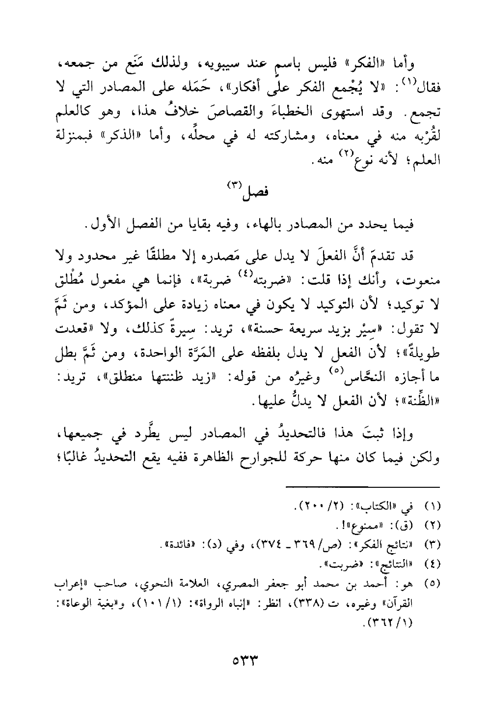 فيما يحدد من المصادر بالهاء وفيه بقايا من الفصل الأول فقد تقدم أن الفعل لا يدل على مصدره إلا مطلقا غير محدد ولا منعوت