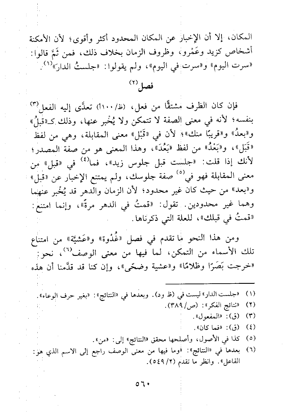 ومن هذا النحو ما تقدم في فصل غدوة وعشية من امتناع تلك الأسماء من التمكن لما فيها من معنى الوصف نحو خرجت بصرا وظلاما وعشاء وضحى وإن كنا قد قدمنا أن هذه @