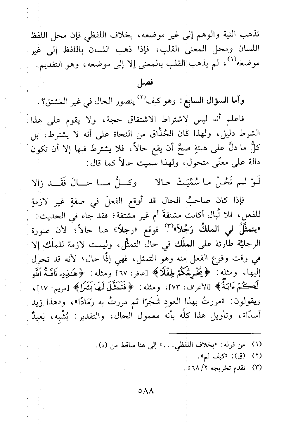 وأما السؤال السابع وهو كيف يتصور الحال في غير المشتق فاعلم أنه ليس لاشتراط