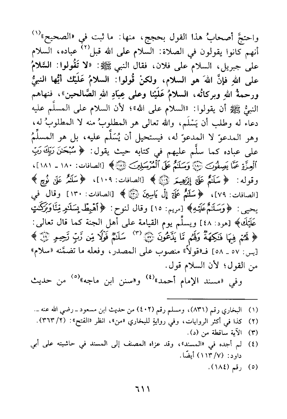 واحتج أصحاب هذا القول بحجج منها ما ثبت في الصحيح أنهم كانوا يقولون في الصلاة السلام على الله قبل عباده السلام على جبريل السلام على فلان فقال النبي لا تقولوا السلام على الله فإن الله هو السلام ولكن قولوا السلام عليك أيها النبي ورحمة الله وبركاته السلام علينا وعلى عباد الله الصالحين // صحيح //