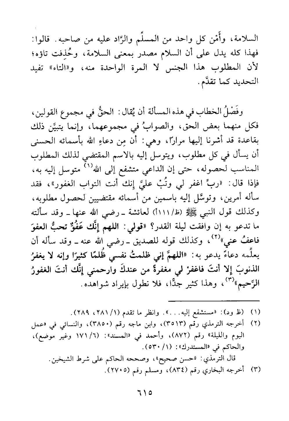 وكذلك قوله للصديق وقد سأله أن يعلمه دعاء يدعو به اللهم إني ظلمت نفسي ظلما كثيرا وإنه لا يغفر الذنوب إلا أنت فاغفر لي مغفرة من عندك وارحمني إنك أنت الغفور الرحيم // رواه البخاري ومسلم // وهذا كثير جدا فلا نطول بإيراد شواهده@