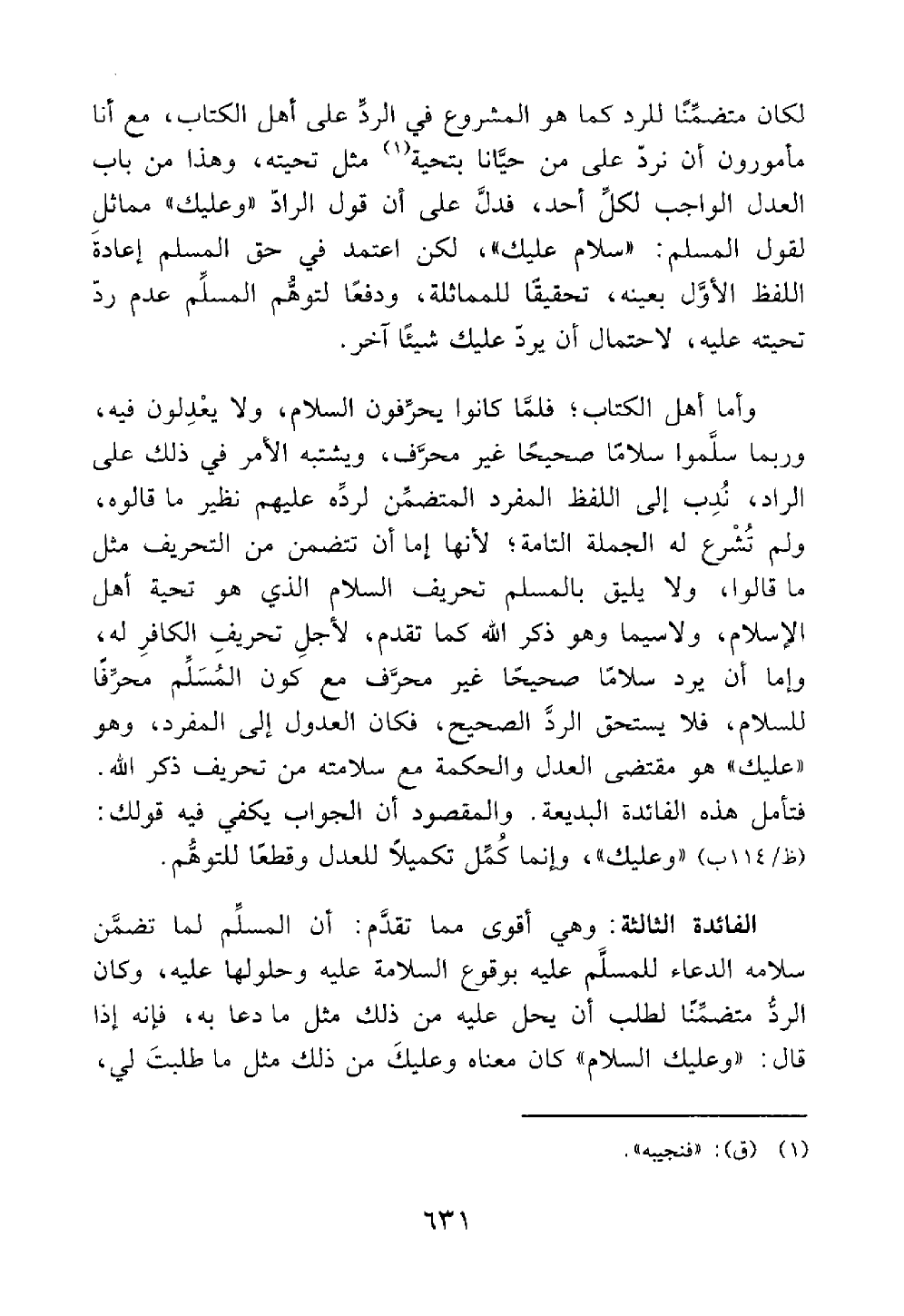 فتأمل هذه الفائدة البديعة والمقصود أن الجواب يكفي فيه قولك وعليك وإنما كمل تكميلا للعدل وقطعا للتوهم