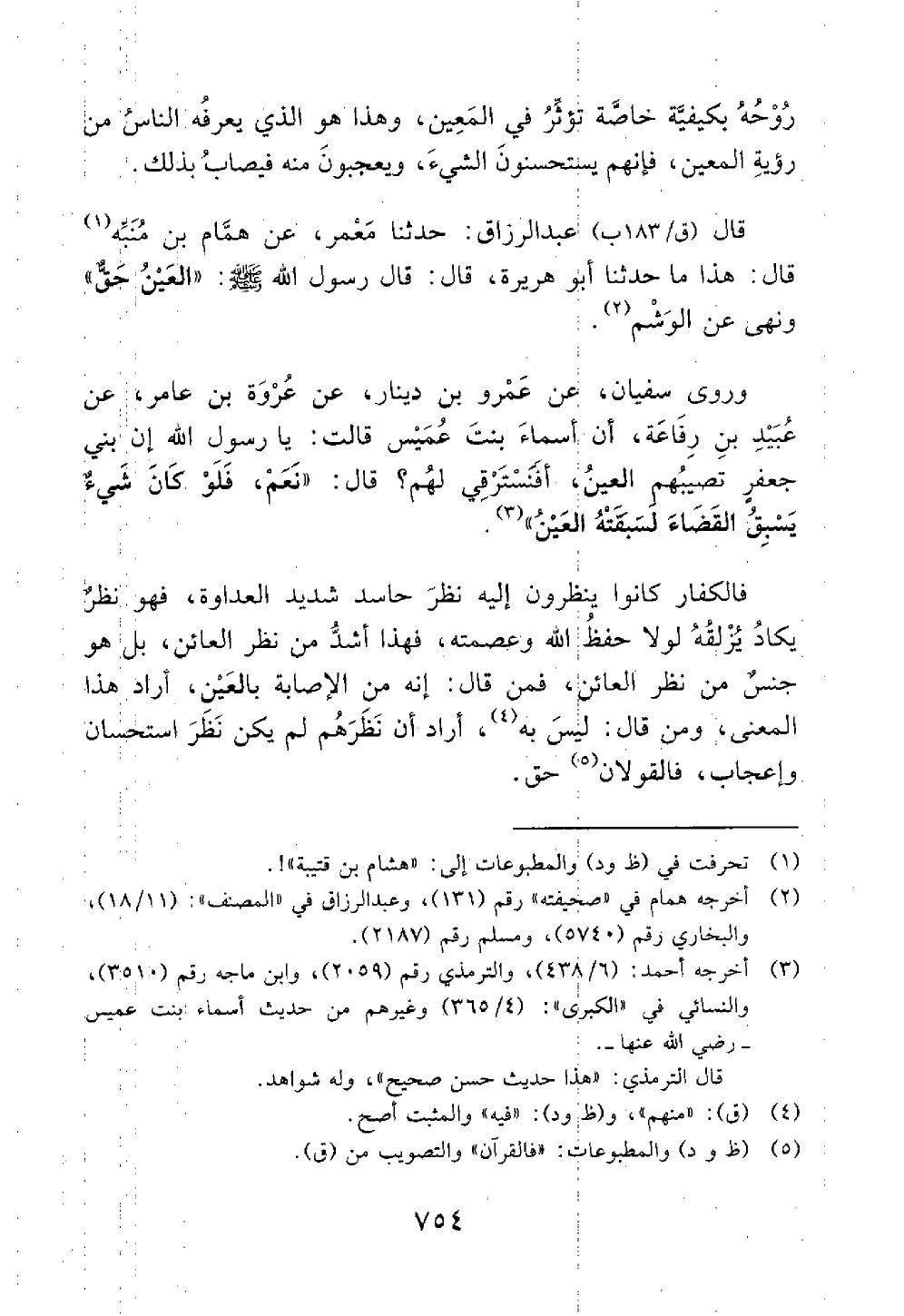 روحه بكيفية خاصة تؤثر في المعين وهذا هو الذي يعرفه الناس من رؤية المعين فإنهم يستحسنون الشيء ويعجبون منه فيصاب بذلك