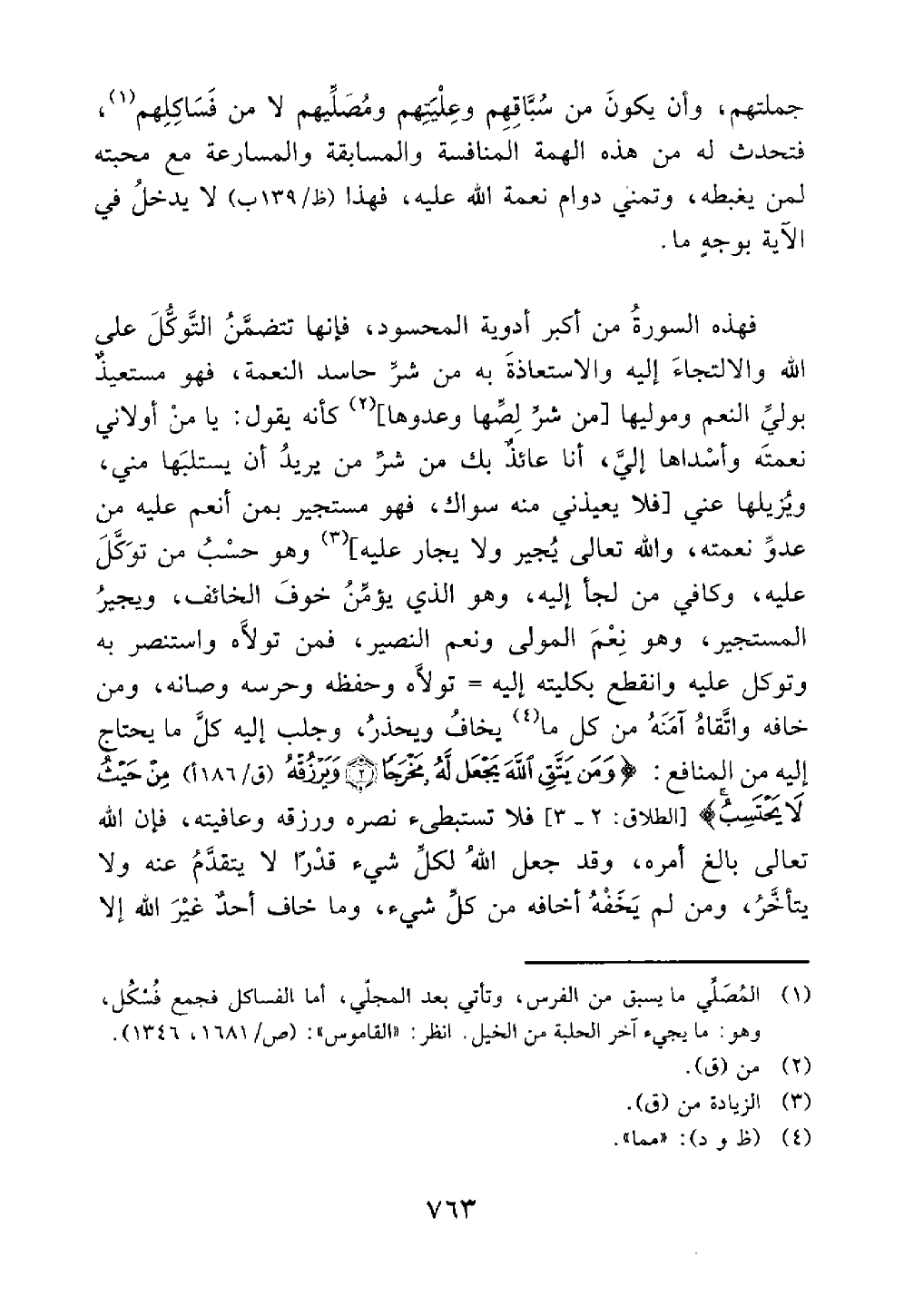 جملتهم وأن يكون من سباقهم وعليتهم ومصلهم لا من فساكلهم فتحدث له من هذه الهمة المنافسة والمسابقة والمسارعة مع محبته لمن يغبطه وتمني دوام نعمة الله عليه فهذا لا يدخل في الآية بوجه ما فهذه السورة من أكبر أدوية المحسود فإنها تتضمن التوكل على الله والإلتجاء إليه