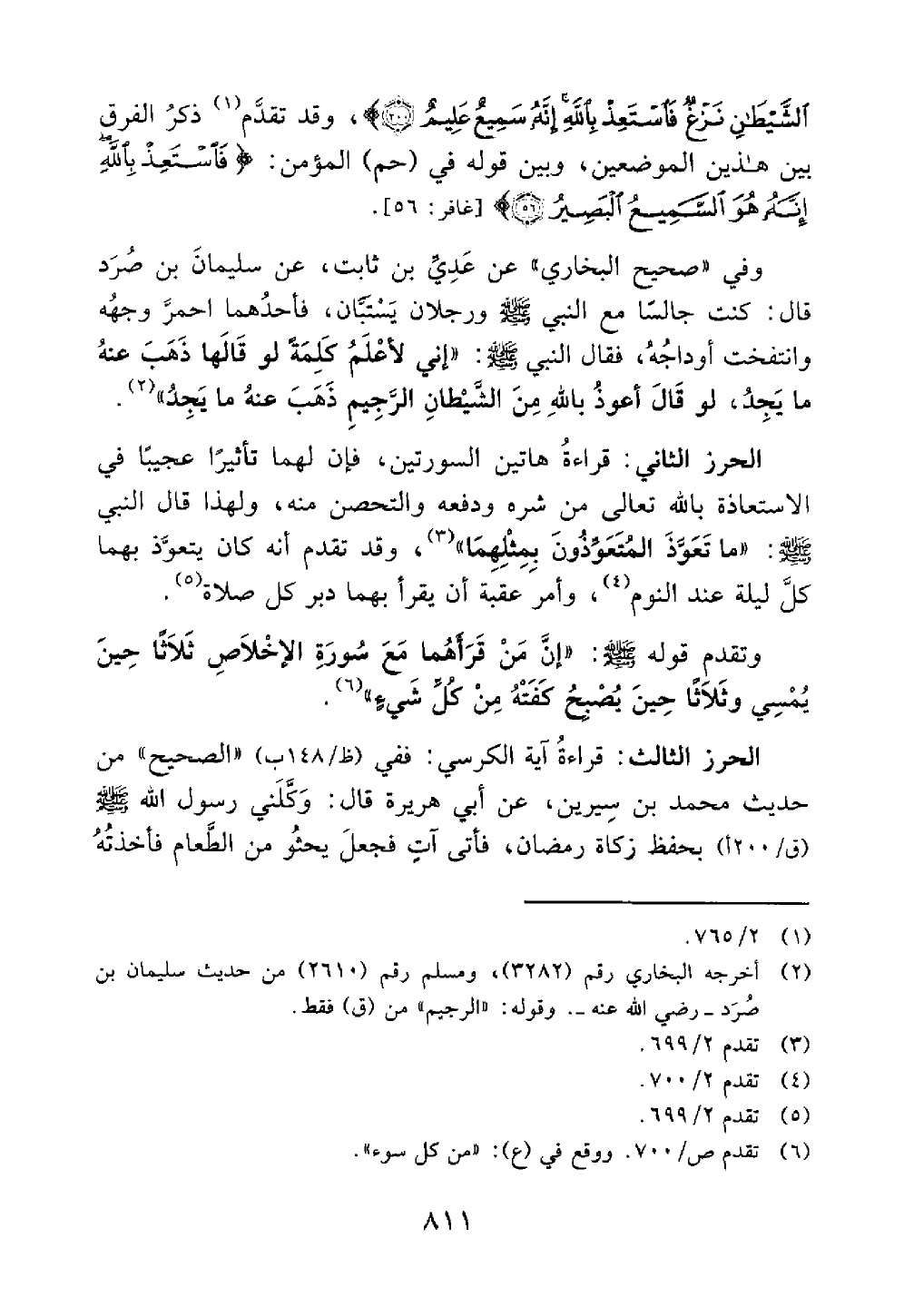 وتقدم قوله إن من قرأهما مع سورة الإخلاص ثلاثا حين يمسي وثلاثا حين يصبح كفته من كل شيء